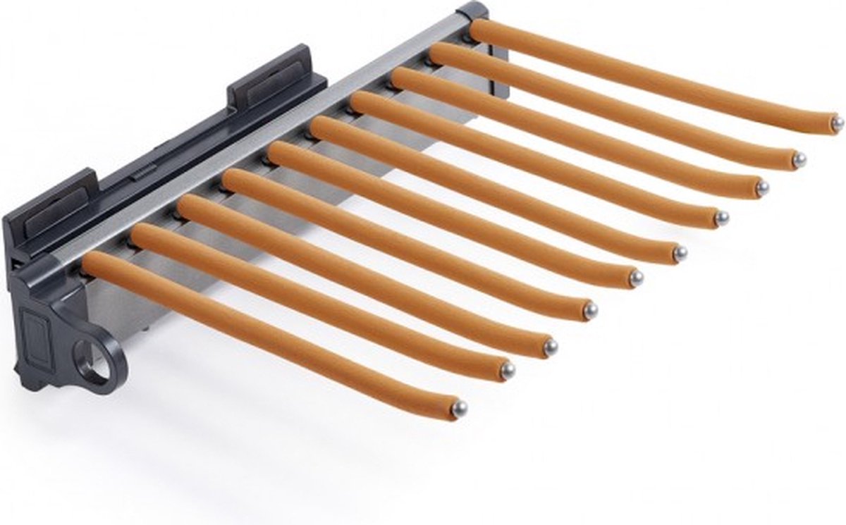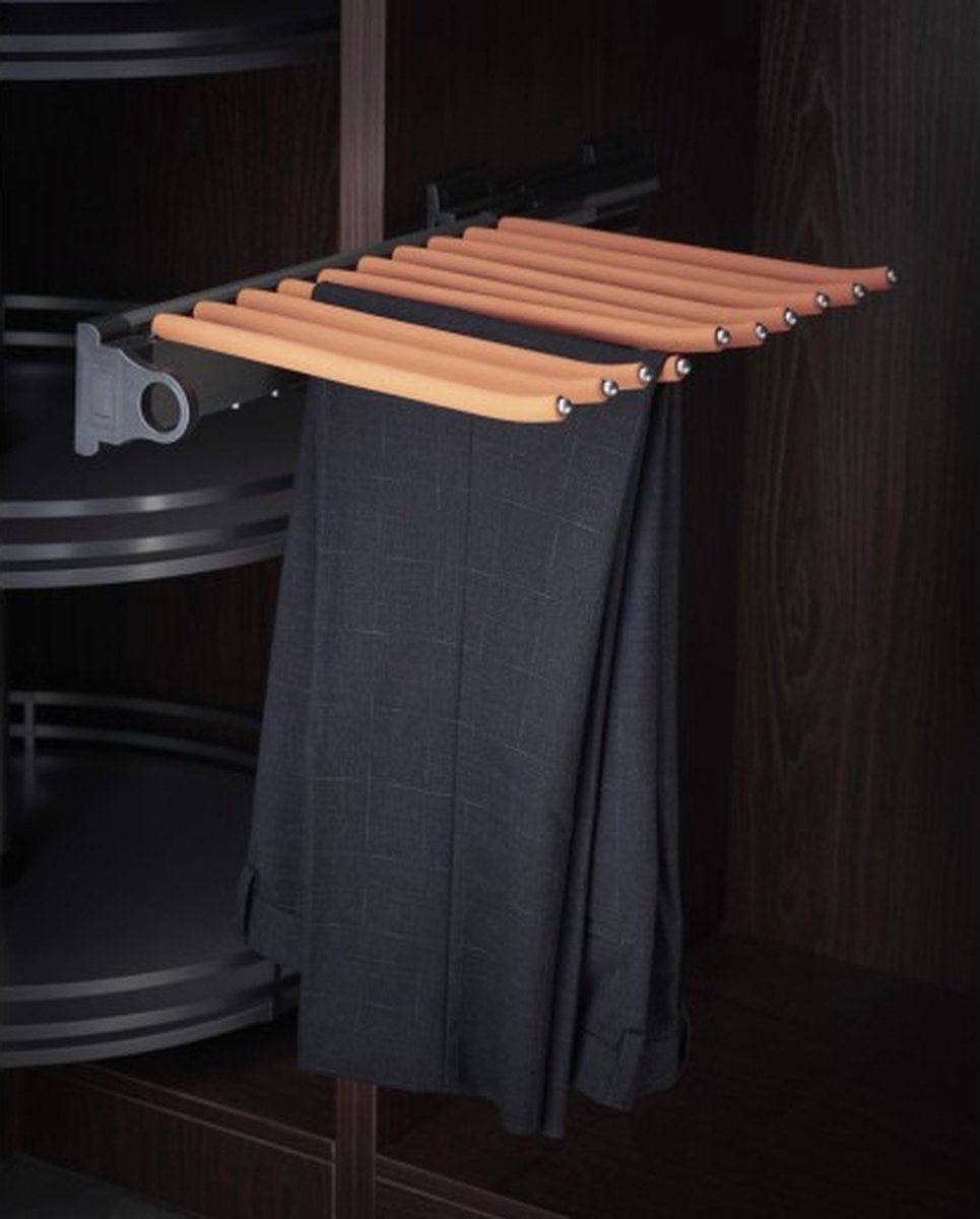 Deze pantalonhouder is ontworpen voor efficiëntie en gemak, met een eenvoudige montage tegen de zij- of tussenwand in jouw kast. Met de bijgeleverde hulpmiddelen is het installatieproces zo eenvoudig dat je binnen no time geniet van een georganiseerde kast.