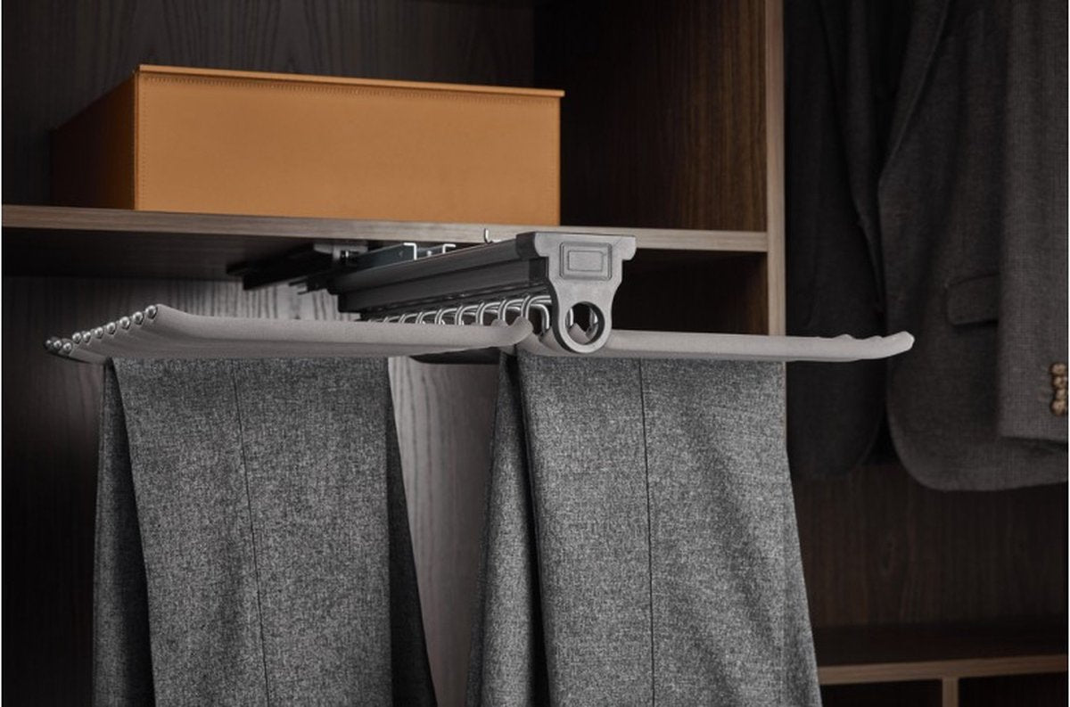 Begin elke dag soepel met de Milano Luxurious pantalonhouder. Deze broekhanger is de ideale opberghulp. Met zorg ontworpen voor jouw pantalons en broeken, belooft deze hanger een zorgeloze ervaring, van de fluisterstille soft-close tot de betrouwbare anti-slip beugels die elke broek op zijn plek houden. Eenvoudig te installeren en gemakkelijk te gebruiken.