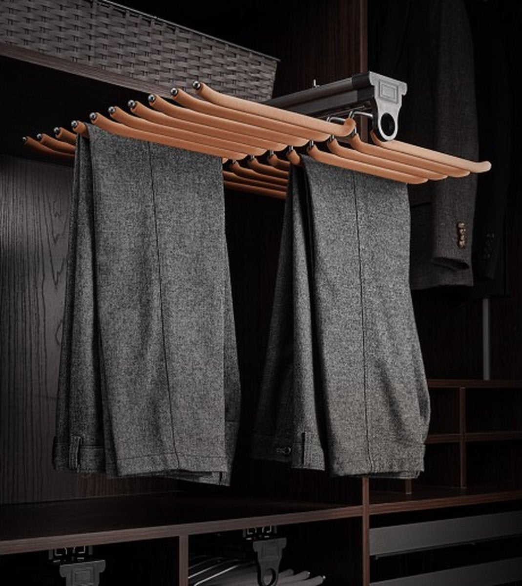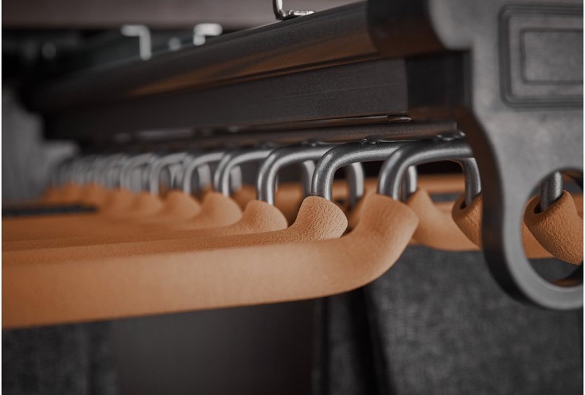 Met een uittrekbaarheid van 95% via kogel gelagerde geleiders, biedt deze pantalonhouder een goede toegankelijkheid. Elke broek is gemakkelijk te bereiken, wat je ochtendroutine aanzienlijk makkelijker maakt en tijd scheelt. De Milano Luxurious pantalonhouder maakt het selecteren van je outfit niet alleen simpeler, maar ook een stuk aangenamer.