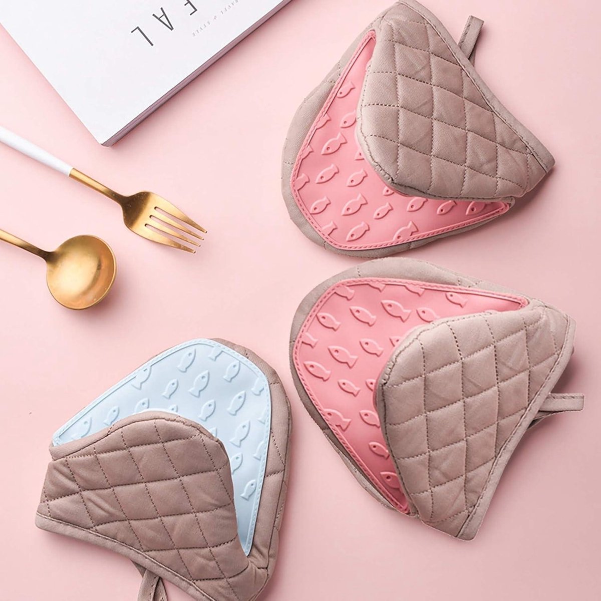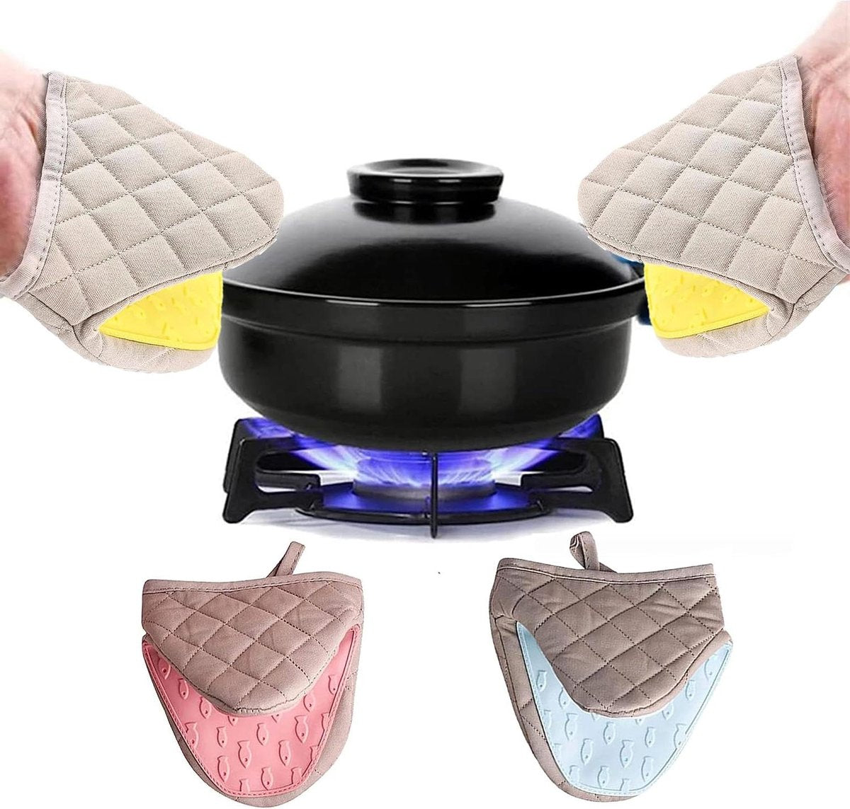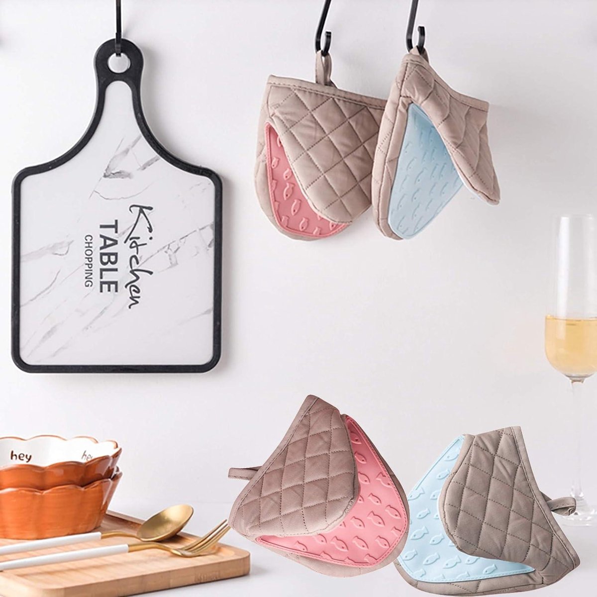 Mini Oven Gloves - Heat Resistant Non-Slip Silicone Cotton Gloves - 2 Pcs with Hanging Loop - Microwave and Oven Safe - Ideal for Cooking and Baking