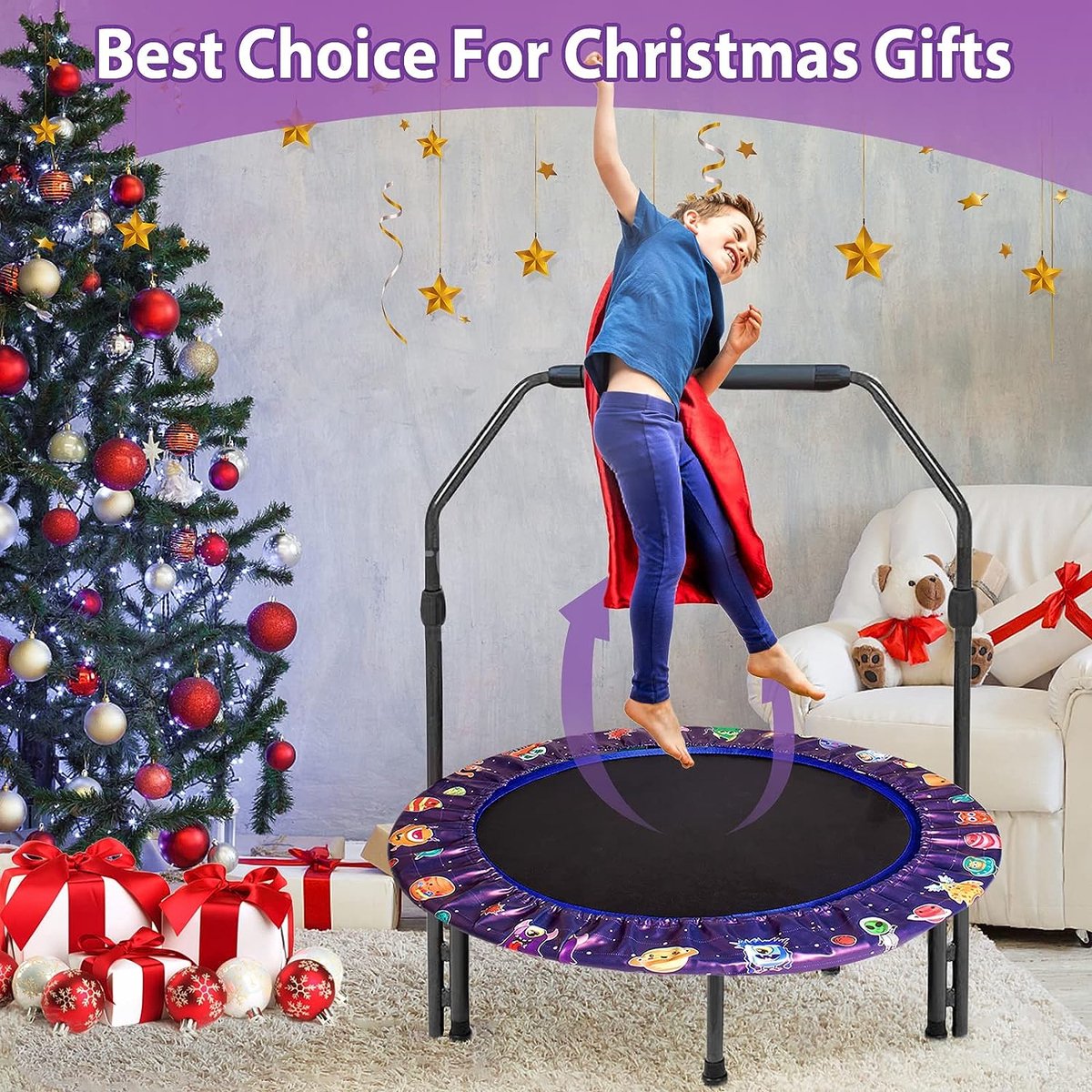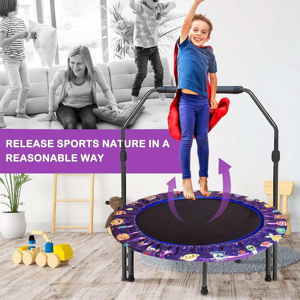 - Ideaal cadeau voor kinderen: het mooie design trekt de aandacht van kinderen. Je ziet hoe de lieve kinderen blij en lachend springen op deze elastische trampoline. Kinderen kunnen ook hun vrienden uitnodigen om mee te doen en te genieten van de gelukkige tijd. Het zal ons een grote eer zijn om uw gezin meer plezier te geven en uw moeilijkheden bij het kiezen van geschenken op te lossen.