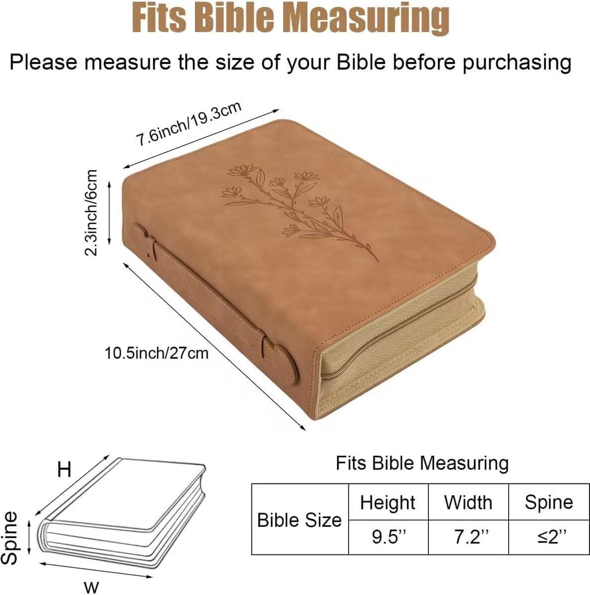 Deze bijbelhoes is uitgerust met een leren bijbelhoes, notitieboektas, elastische bladwijzer, ruggreep en afneembare pols. Het biedt een comfortabele en veilige pasvorm voor grotere bijbels.