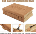 Deze bijbelhoes is uitgerust met een leren bijbelhoes, notitieboektas, elastische bladwijzer, ruggreep en afneembare pols. Het biedt een comfortabele en veilige pasvorm voor grotere bijbels.