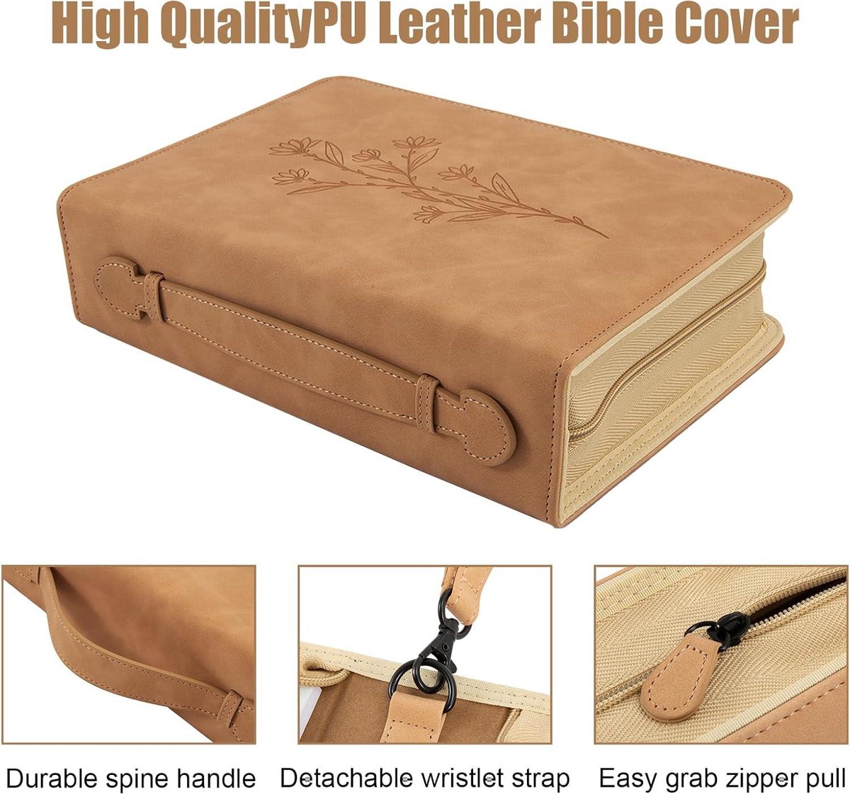 Minimalistisch design waterdichte bloemenbijbelhoes met afneembare polsband - PU-lederen Bijbelhoes