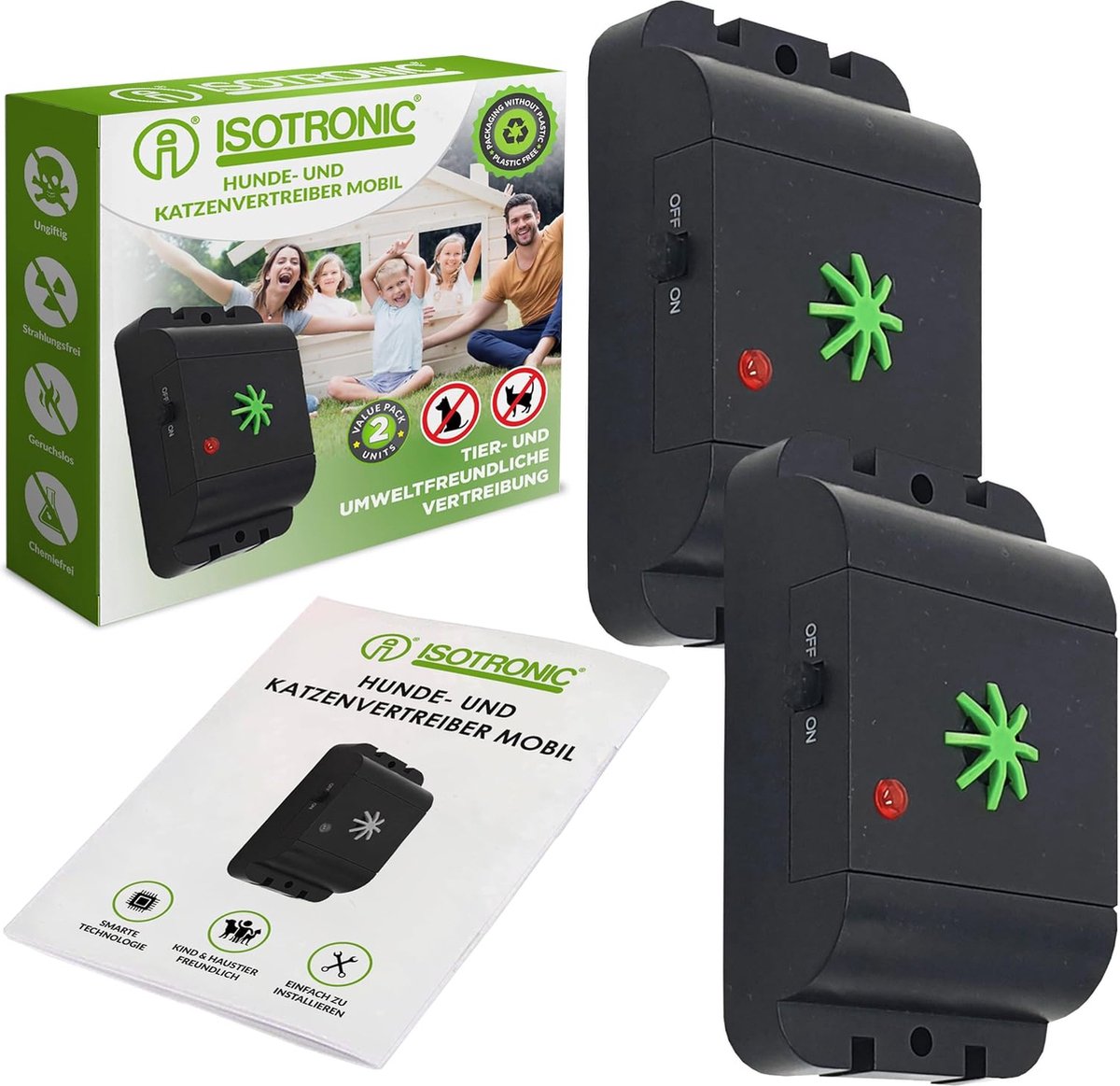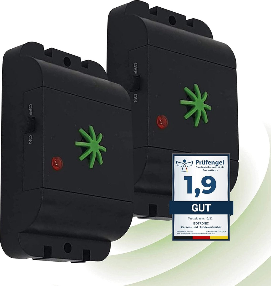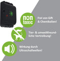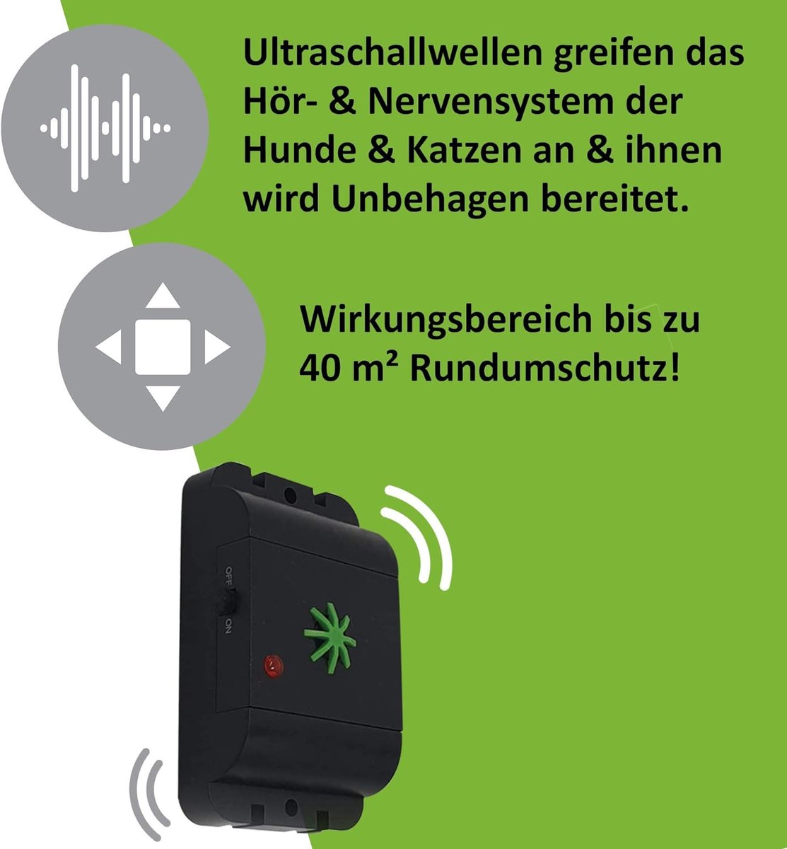 Groot bereik: Met een werkingsbereik van ongeveer 40 m² per apparaat is onze katten- en hondenverjager ideaal voor gebruik buitenshuis. Bescherm uw tuin op een effectieve en diervriendelijke manier!