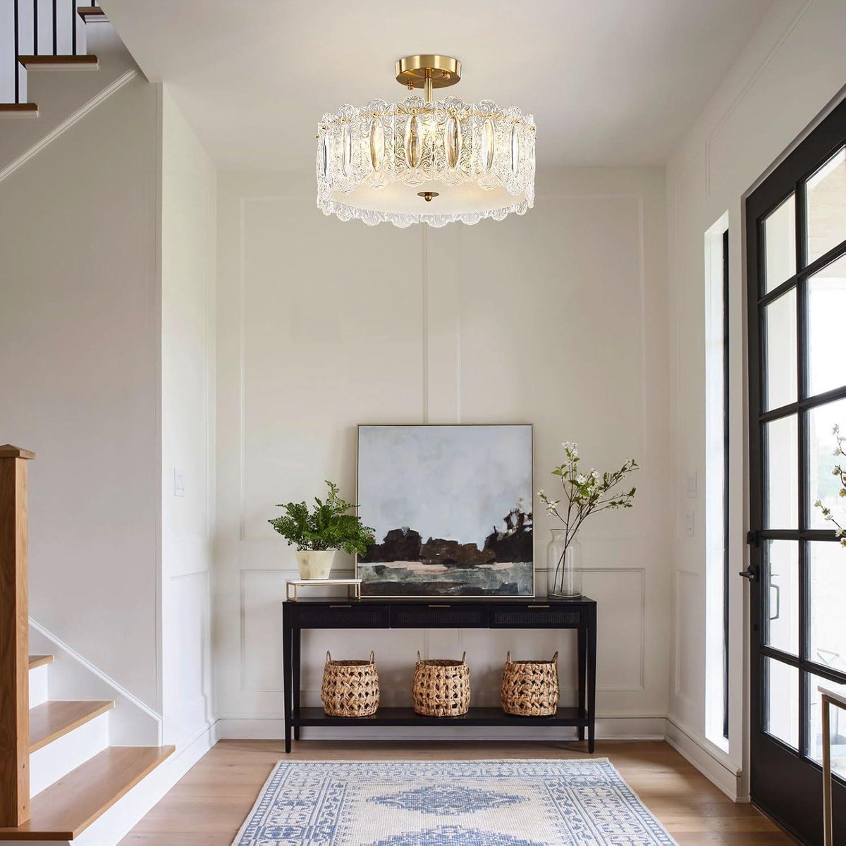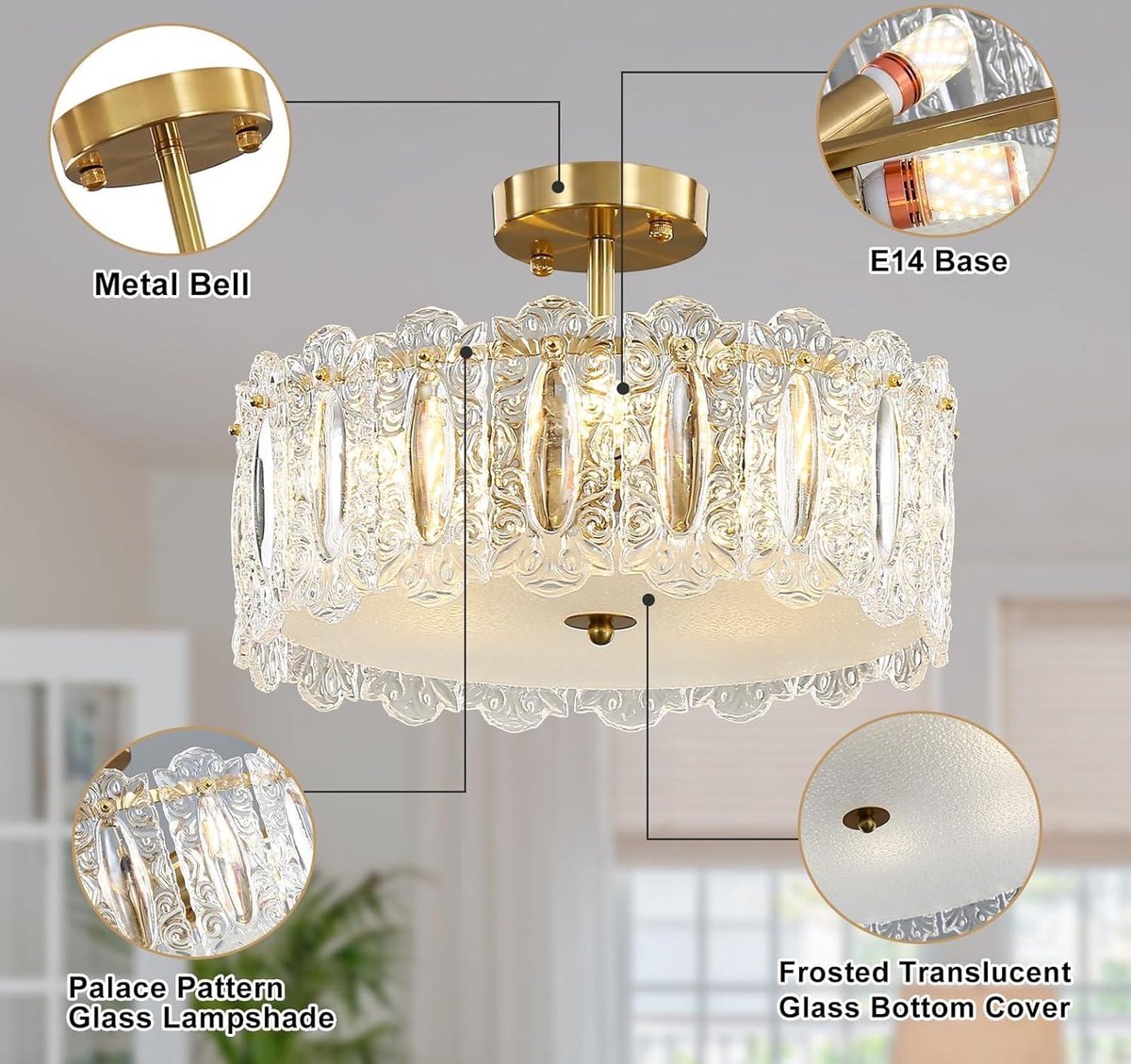 Deze plafondlamp heeft een diameter van 40 cm en is 16 cm hoog, waardoor het ideaal is voor verschillende ruimtes in huis. De duurzame metalen constructie zorgt voor uitstekende roest- en hittebestendigheid, terwijl de glazen kap met patroon zorgt voor een aangenaam en zacht licht.
