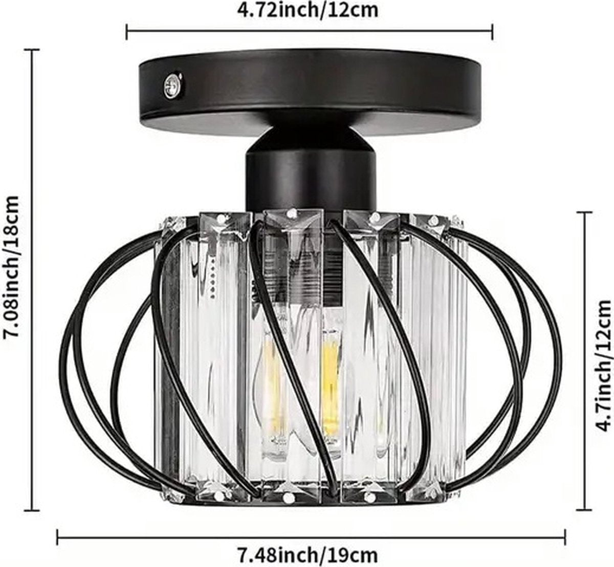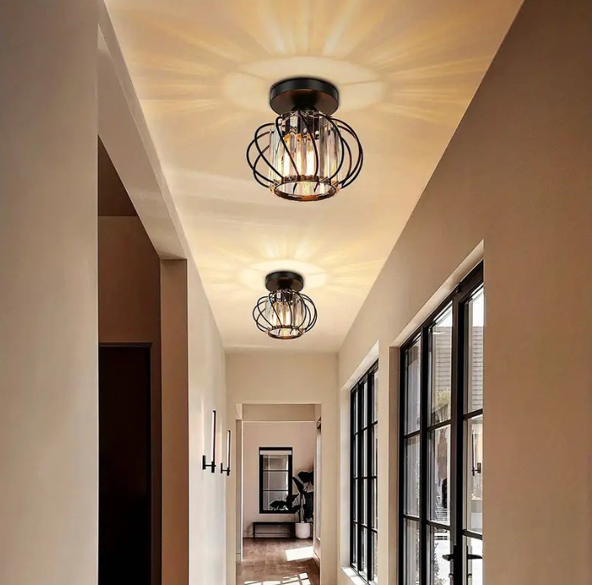 Moderne Kristallen Plafondlamp - LED Rond Kristallen - Kroonluchter - Zwart - Gangpad of Hal Lamp - Crystal Led Lamp - Plafoniere