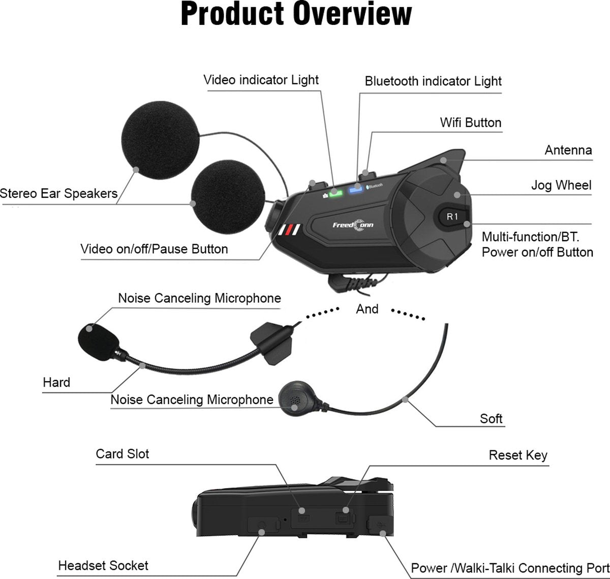• Bluetooth-connectiviteit :Verbindt naadloos met uw telefoon via Bluetooth, waardoor handsfree communicatie en video-opname mogelijk is.