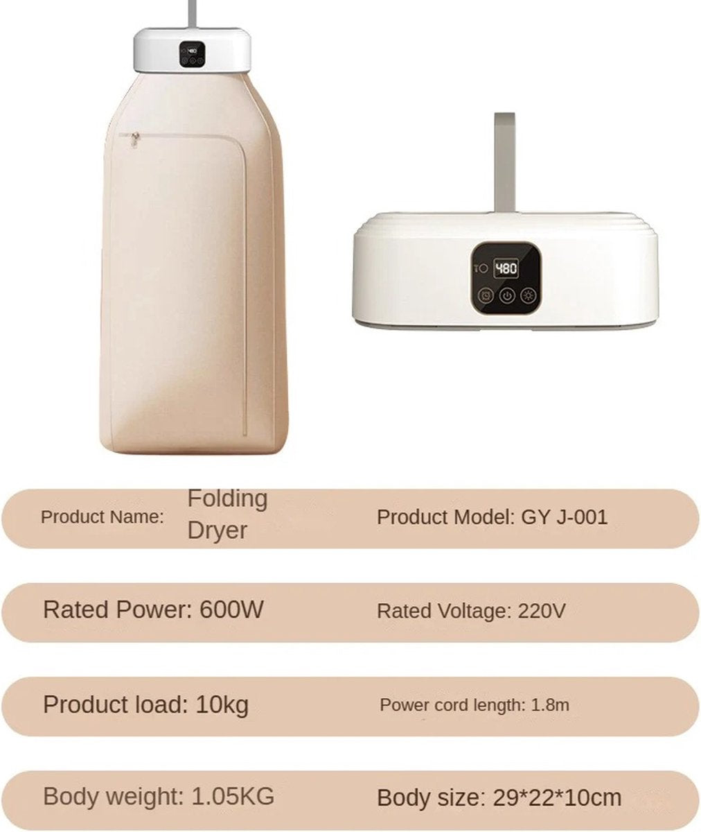 Multifunctionele Droger - Elektrische Wasdroger - Draagbare Compacte Wasdroger - Tijdsinstelling - Beige