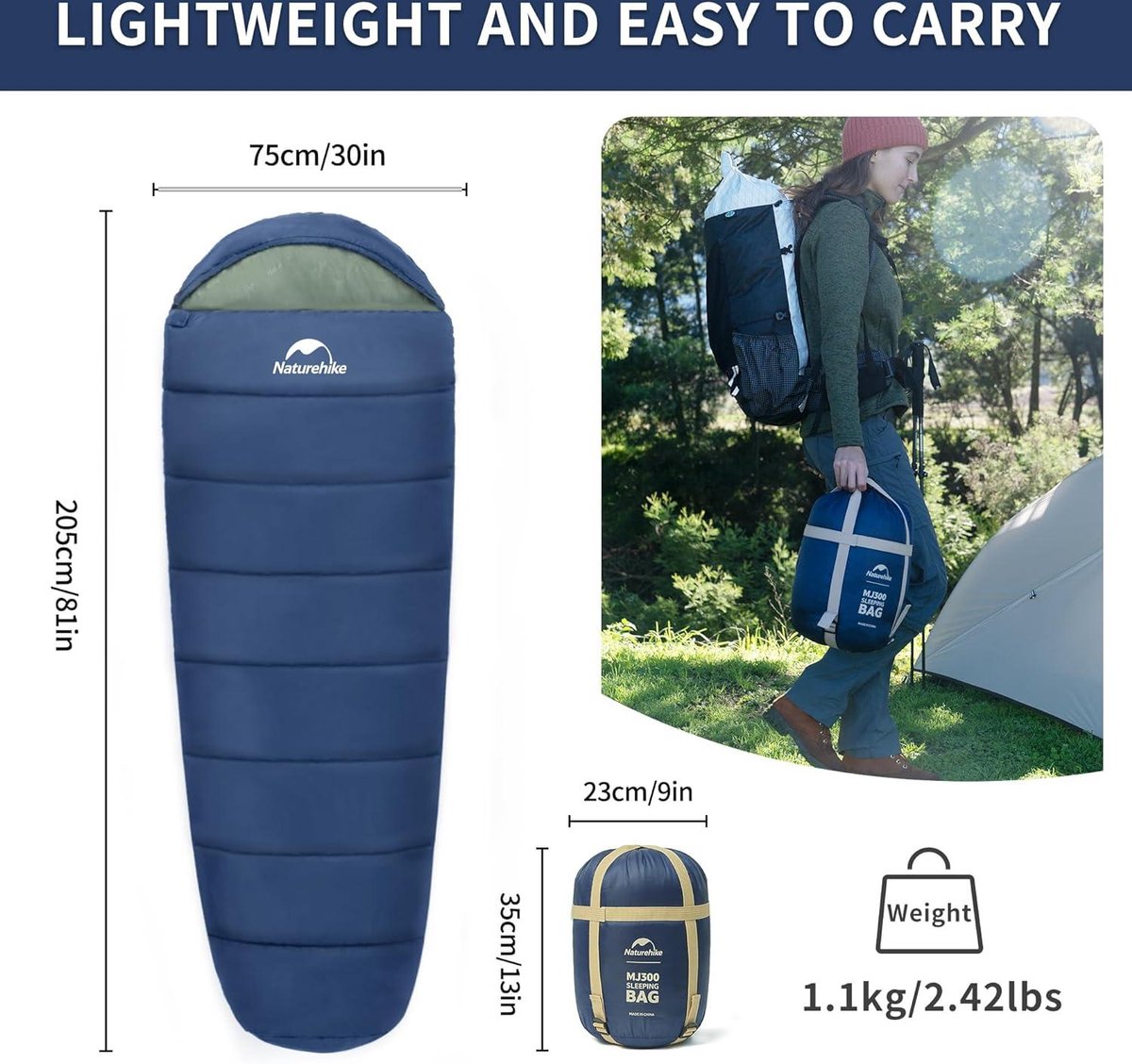 Mummie slaapzak met capuchon 300GSM - Lichtgewicht compact voor eenpersoon - 4 ℃ Slaapzak Zomer Winter - Geweldig voor volwassenen en kinderen - wandelen reizen Sleeping Bag
