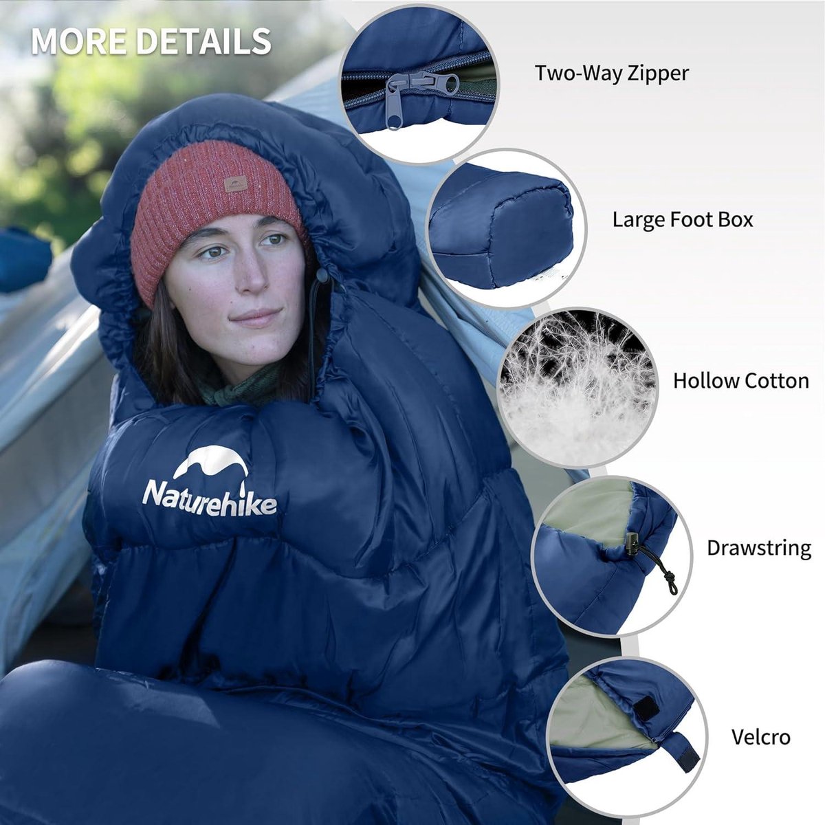 Met deze Naturehike winterslaapzak ben je verzekerd van een warme en comfortabele nachtrust, waar je ook bent. Of je nu gaat kamperen, wandelen of gewoon een slaapzak nodig hebt voor logeerpartijen, deze slaapzak is perfect voor alle gelegenheden. Met een aanbevolen slaaptemperatuurbereik van 4 ℃/11 ℃/32 °F en een extreme bedrijfstemperatuur van -17 ℃/32 °F, kan deze slaapzak de meeste koude weersomstandigheden aan.Voordelen van deze winter slaapzak: - Gemaakt van 190T pongé stof en gevuld met 650g 300GSM hol katoen voor ultiem comfort - Geschikt voor alle seizoenen, ideaal voor zowel zomer- als wintergebruik - Eenvoudig en draagbaar, weegt slechts 1,1 kg en wordt geleverd met een waterdichte opbergtas - Voorzien van een capuchon, voetbox en klittenbandsluiting om warmteverlies te voorkomen - Waterdicht en gemakkelijk schoon te maken, geschikt voor verschillende weersomstandighedenDeze lichte en compacte mummieslaapzak is ontworpen voor optimaal gemak tijdens al je buitenavonturen. Met de afmetingen van 205 x 75 cm en een gewicht van slechts 1,1 kg, is hij geschikt voor zowel volwassenen als kinderen. De opgevouwen afmetingen zijn slechts 35 x φ23 cm (13,8 x φ9,2,5 cm), waardoor de slaapzak gemakkelijk op te bergen is in de meegeleverde waterdichte opbergtas.Het gedetailleerde ontwerp van de slaapzak zorgt voor extra functionaliteit, zoals een capuchon met trekkoord om je hoofd warm te houden, een voetbox voor meer comfort en een tweeweg-ritssluiting voor gemakkelijke toegang. Daarnaast is de slaapzak voorzien van een waterdichte coating aan zowel de binnen- als buitenstof, waardoor hij bestand is tegen vochtige omstandigheden en gemakkelijk schoon te maken is.Specificaties: - Afmetingen: 205 x 75 cm - Materiaal: 190T pongé stof, 300GSM hol katoen - Aanbevolen slaaptemperatuurbereik: 4 ℃/11 ℃/32 °F - Extreme bedrijfstemperatuur: -17 ℃/32 °F - Opgevouwen afmetingen: 35 x φ23 cm - Gewicht: 1,1 kgMet deze Naturehike winter slaapzak ben je altijd voorbereid op een goede nachtrust, waar je avonturen je ook brengen.