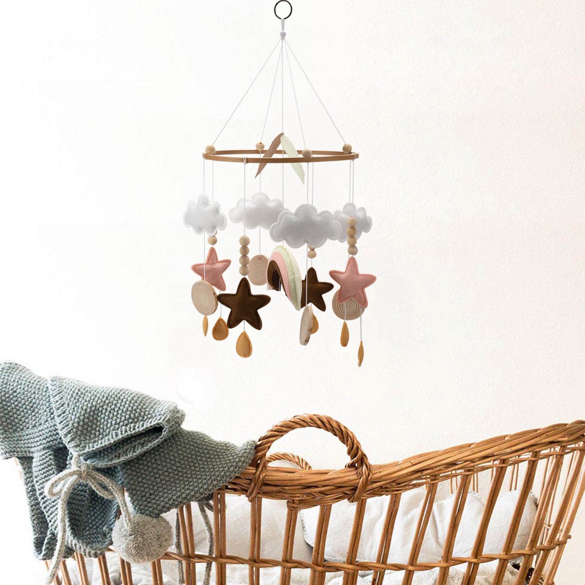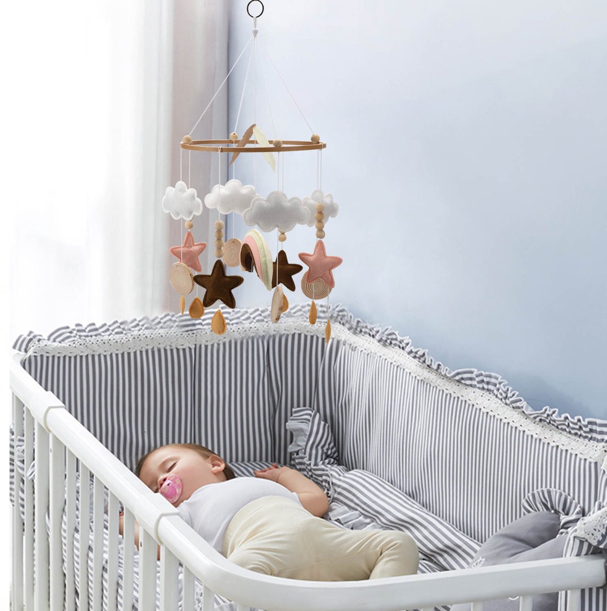 Muziekmobiel baby - Baby mobiel meisjes - roze - Box mobiel met geluid - regenboog - sterretjes - Babykamer - rainbow mobile - Muziek mobiel box