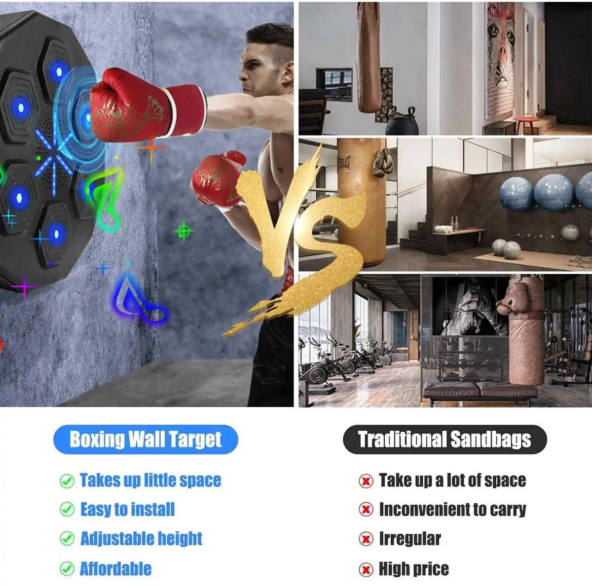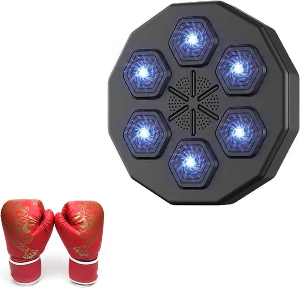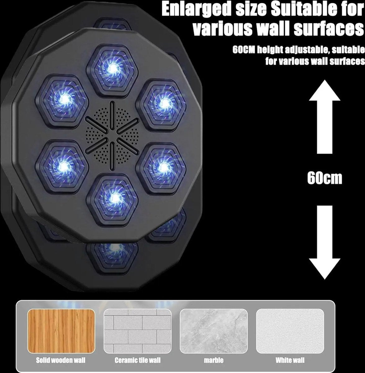 De muziekboksmachine is vervaardigd uit stevig polyurethaan en is ontworpen om lange tijd mee te gaan, zelfs bij intensief gebruik. LED-verlichting op het product geeft de plaatsing en positie van de stoten aan, wat helpt bij het coördineren van uw bewegingen.