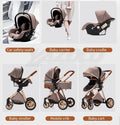 N.lux - Luxe kinderwagen set 3 in 1 - Wandelwagen - Inclusief autostoel - Buggy - Bruin