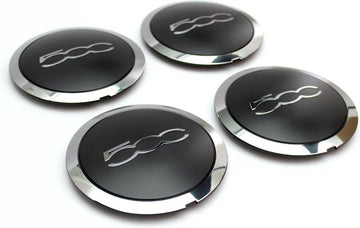 Naafdop/ velgdop set van 4 stuks Fiat 500 vanaf bouwjaar 2007 in de kleur zwart met chroom rand en 500 logo