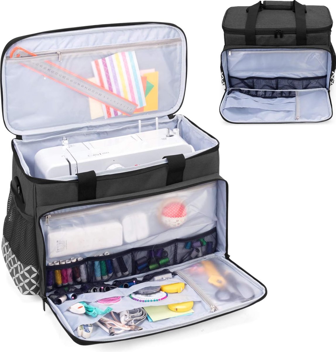 - Grote naaicapaciteit: deze naaimachine tas is compatibel met en de meeste standaard naaimachines. Binnenmaten: 42 x 19 x 30 (l x b x h) cm, buitenafmetingen: 43,5 x 24,1 x 31,4 cm.
