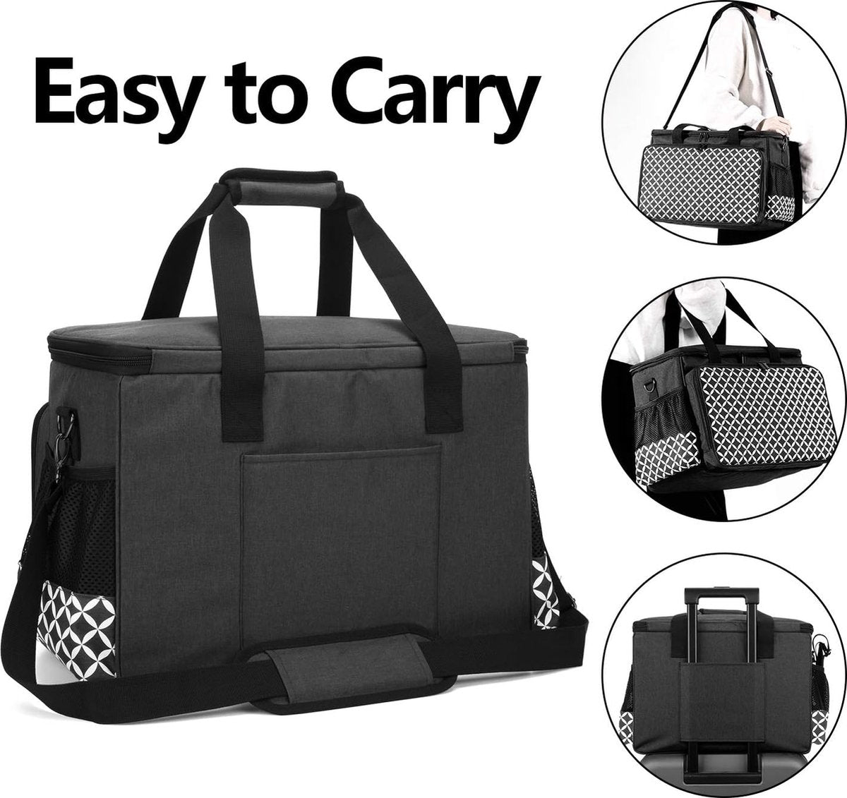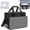 Naaimachinetas met houten plank aan de onderkant, draagtas, transport- en opbergtas is compatibel met de meeste gangbare naaimachines en accessoires, zwart met diamantpatroon