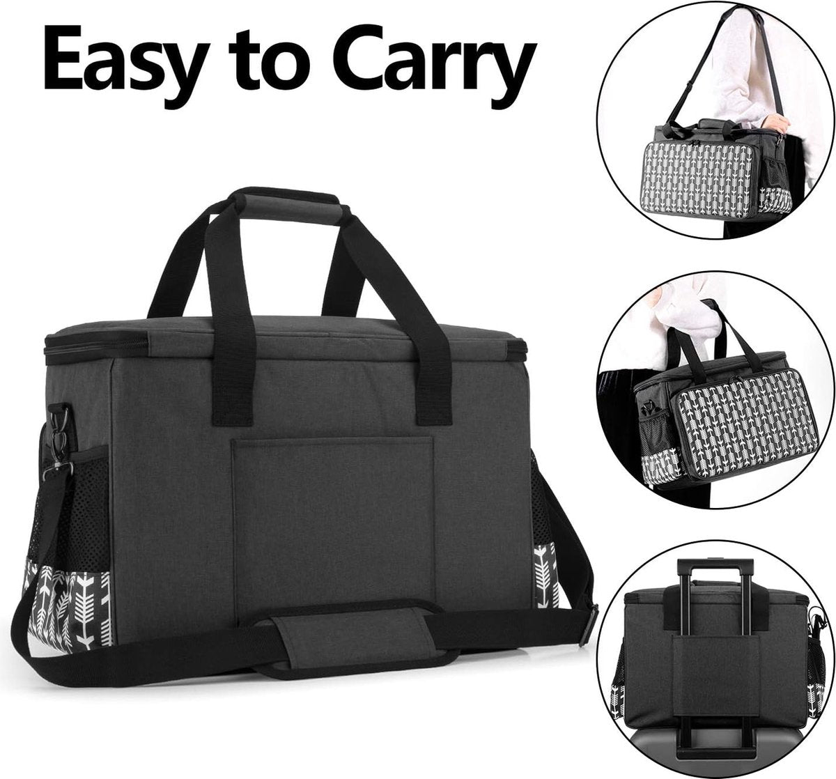 - Grote naaicapaciteit: deze naaimachine tas is compatibel met en de meeste standaard naaimachines. Binnenmaten: 42 x 19 x 30 (l x b x h) cm, buitenafmetingen: 43,5 x 24,1 x 31,4 cm.
