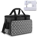 Naaimachinetas met houten plank, naaimachine draagtas, transport- en opbergtas is compatibel met de meeste gangbare naaimachines en accessoires, zwart met pijlpatroon