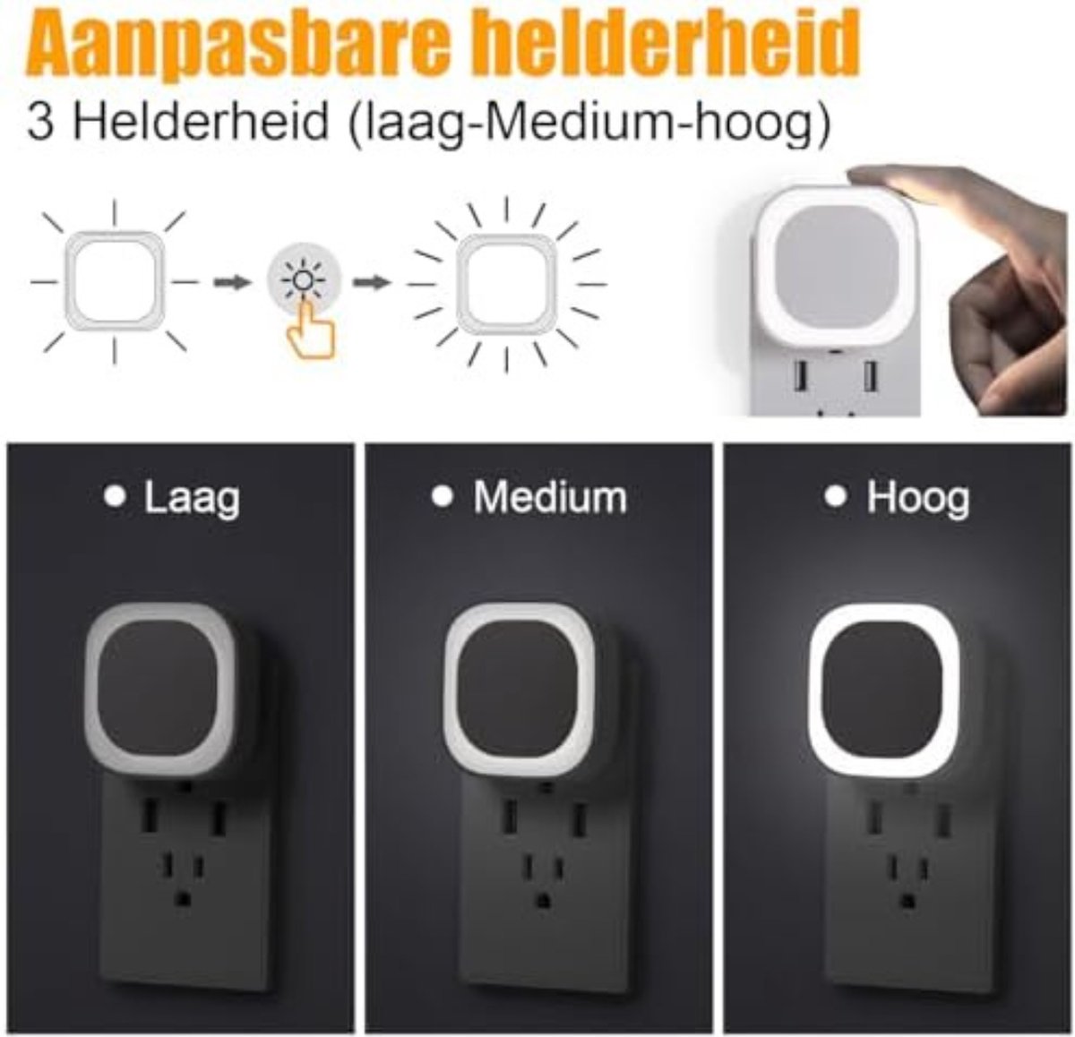 Slank ontwerp, compact formaat: het strakke vierkante dubbellaagse ontwerp is perfect voor uw interieur. Het slimme nachtlampje is klein, mooi en prachtig om in de gaten te houden. Wanneer hij op een standaard stopcontact wordt aangesloten, kan hij het hele stopcontact bedekken om het veilig en mooi te maken, of kan hij slechts één stopcontact bezetten, zodat het tweede stopcontact vrij blijft voor gebruik.