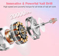 Nail Milling Cutter Cordless Rechargeable Electric Nail Cutter 20000rpm 10 Bit Pedicure Set for Cuticles Shellac Acrylic Gel Beginners - Kredioo