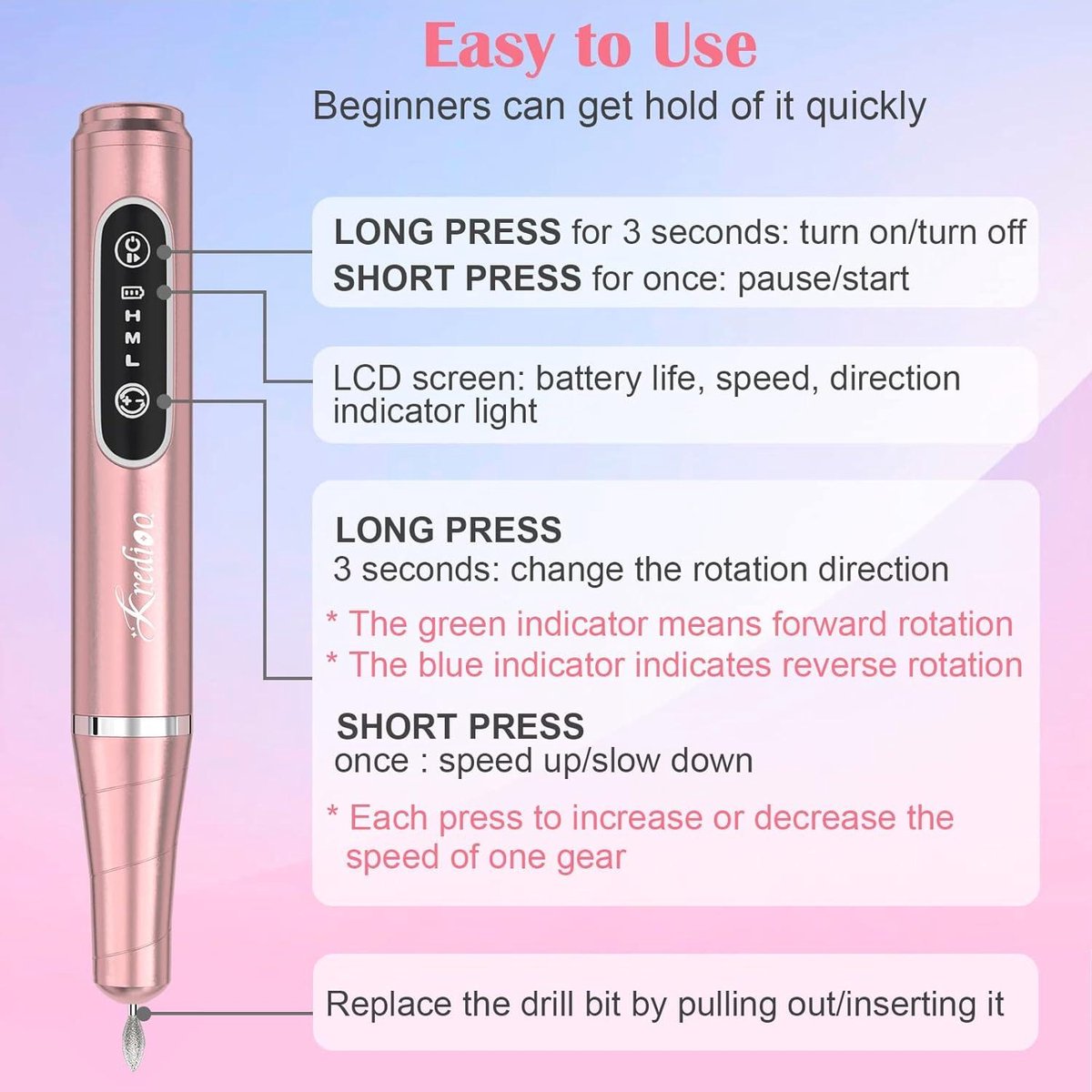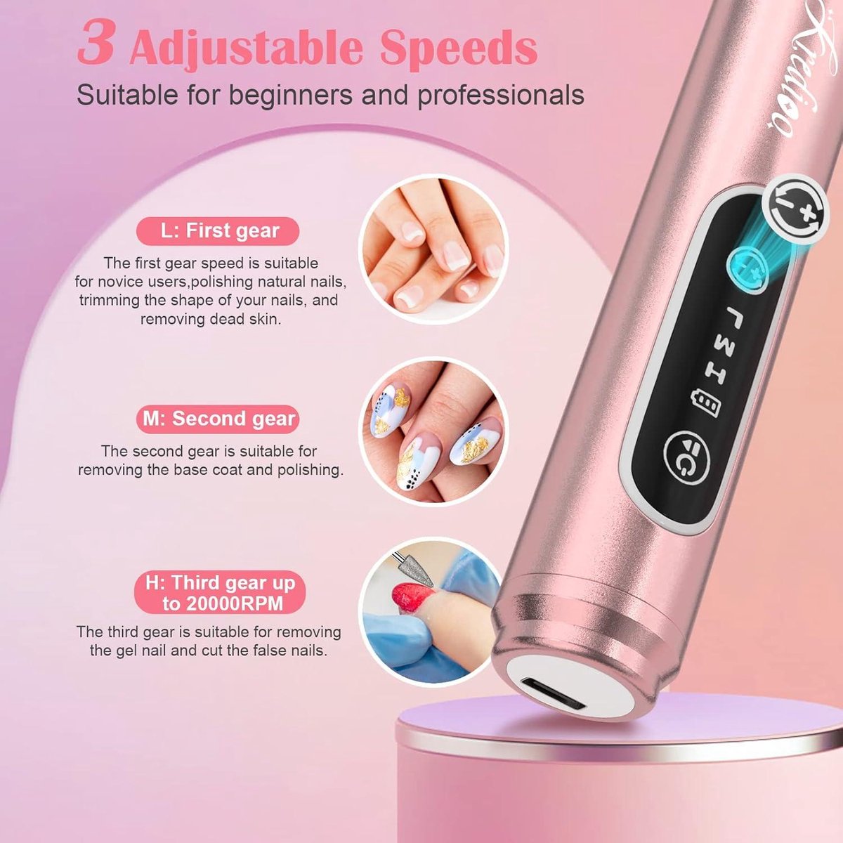 Say goodbye to tangled cords and restrictions with this cordless nail cutter. The powerful motor can reach speeds of up to 20,000 rpm, making it suitable for professional use. The bright LED display allows you to easily track the speed and direction, while the pause function and storage capabilities make it incredibly convenient to use.