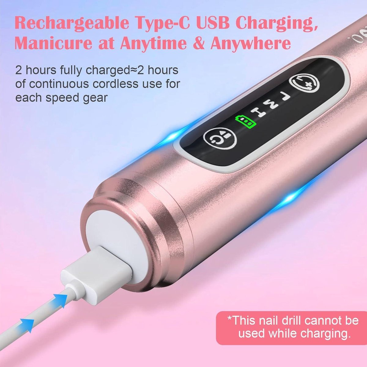 Equipped with a safety lock and self-protection system, this nail cutter ensures stability and longevity. The loose clip lock design secures the bit in place, protecting the motor and extending the product's lifespan. Plus, the battery life lasts approximately a week on a single two-hour charge, giving you the freedom to enjoy nail art wherever you go.