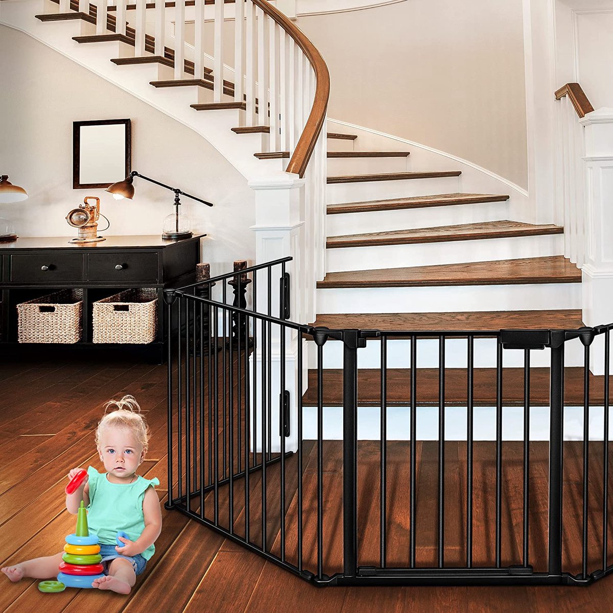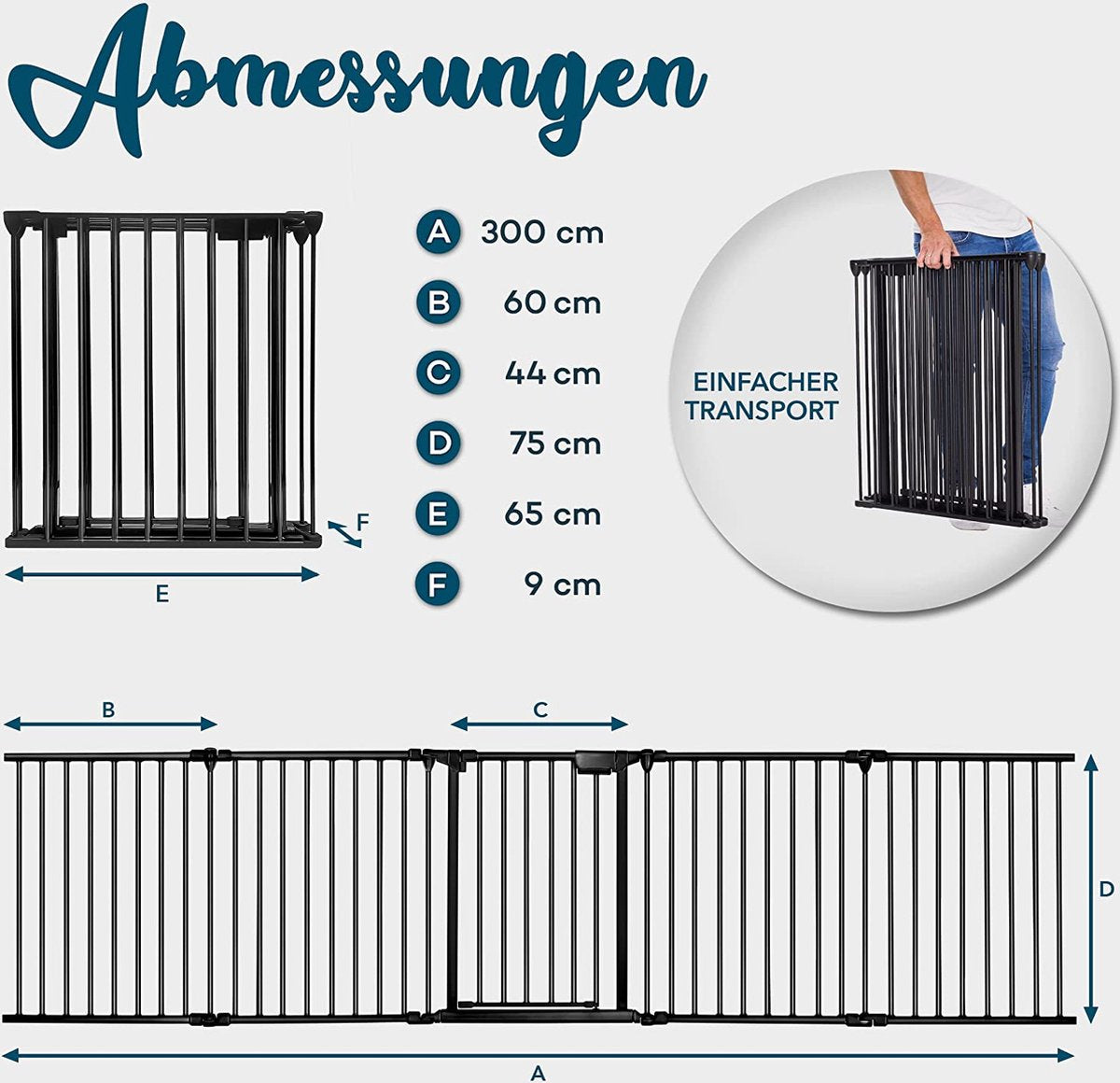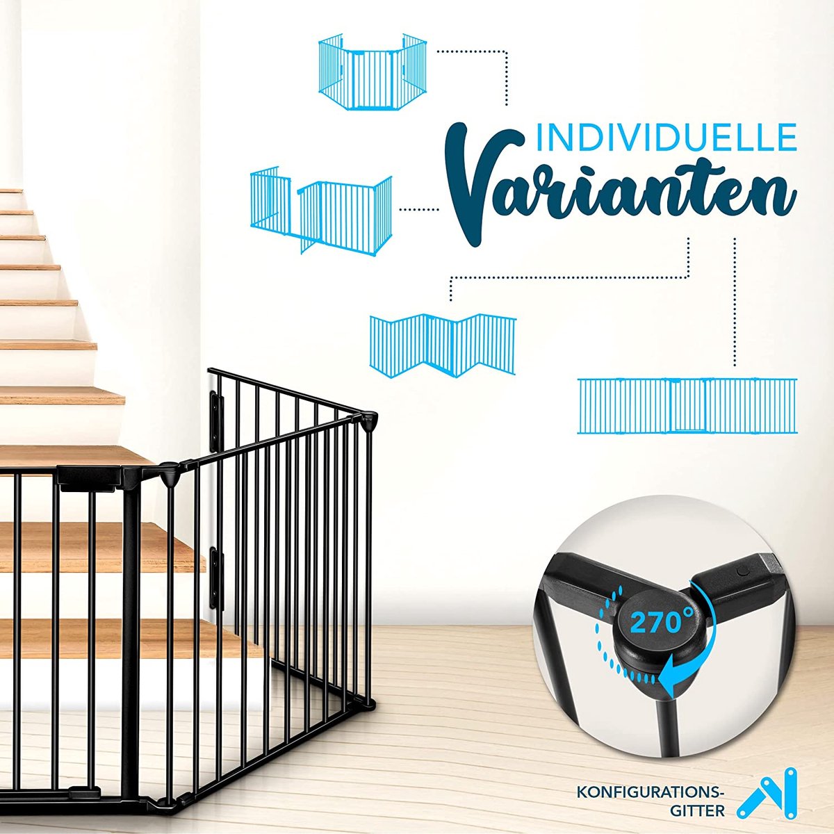 NaSK - Veiligheidshek metaal 305 cm - Voor Huisdieren & Kinderen - Kachelhek, Veiligheidsrooster voor oven vouwbaar - Configuratierooster incl. 5 elementen, deur