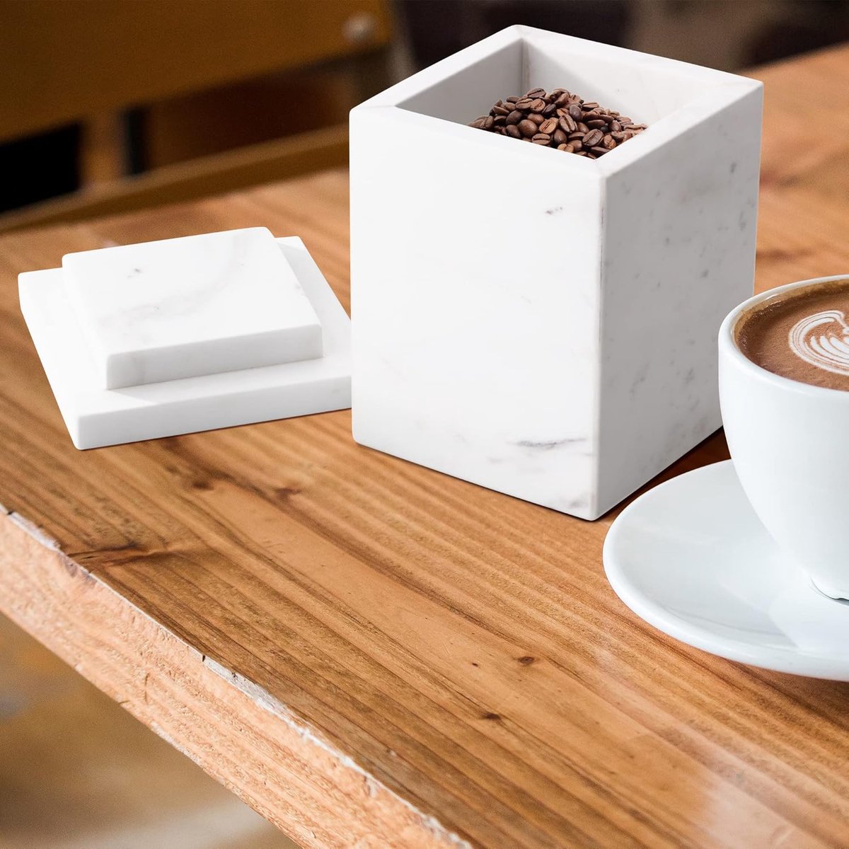 Natuurlijke marmeren zoutkelder Kruidencontainer met deksel Aanrecht Keuken Decoratie Opslag Zout Pepercontainer Boterrek en Theecontainer Wit