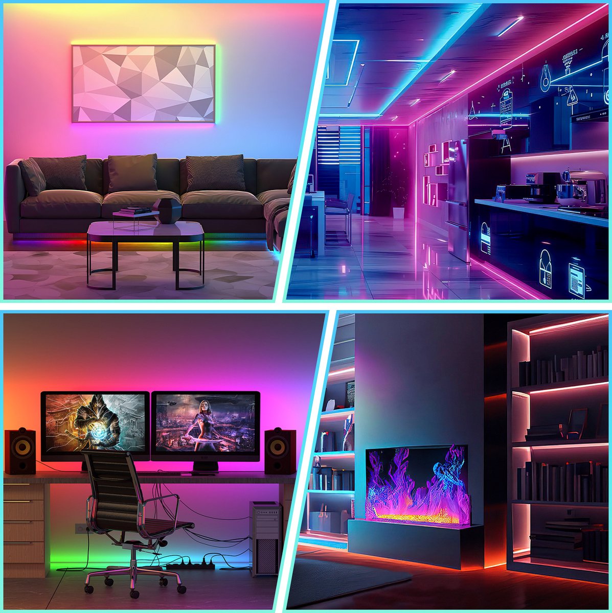 Veelzijdige functies: Onze LED strips bieden een keuze uit 16 miljoen kleuren en de mogelijkheid om individuele lichtpatronen te creëren en op te slaan. Dankzij de timerfunctie kun je de verlichting gemakkelijk automatisch regelen via de app.