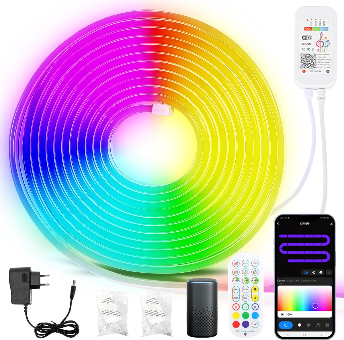 Neon LED Strip RGBIC 10(2x5m) Meter - 3535 Light strip IP65 Voor Buiten LED Verlichting- Met App En Afstandsbediening - Smart LED-strip - Volledig Dimbaar - Compatible met Google Home, Amazon Alexa En Siri