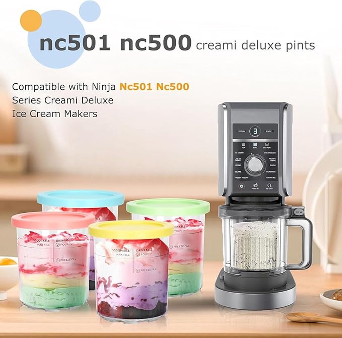 - Compatibiliteit: deze 4-delige Ninja Creami pint en dekselvervangingsset van 4 is perfect compatibel met de Ninja Creami Deluxe NC501, NC500 serie ijsmachine.