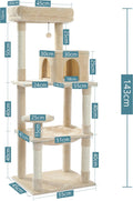 Nique Krabpaal - Krabpaal voor Grote Katten - Kattenboom met Hangmat - Kattenpaal - 143 cm - Beige