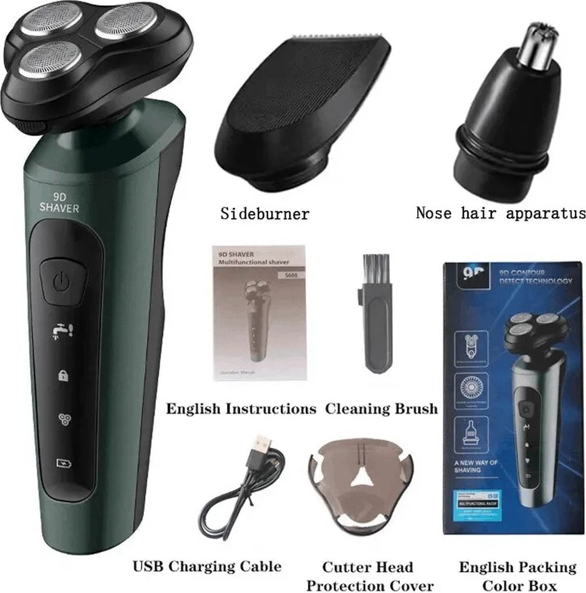 Nique Scheerapparaat mannen - 4 in 1 - Massageborstel - Neushaartrimmer - Baardtrimmer - Waterdicht - Groen