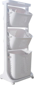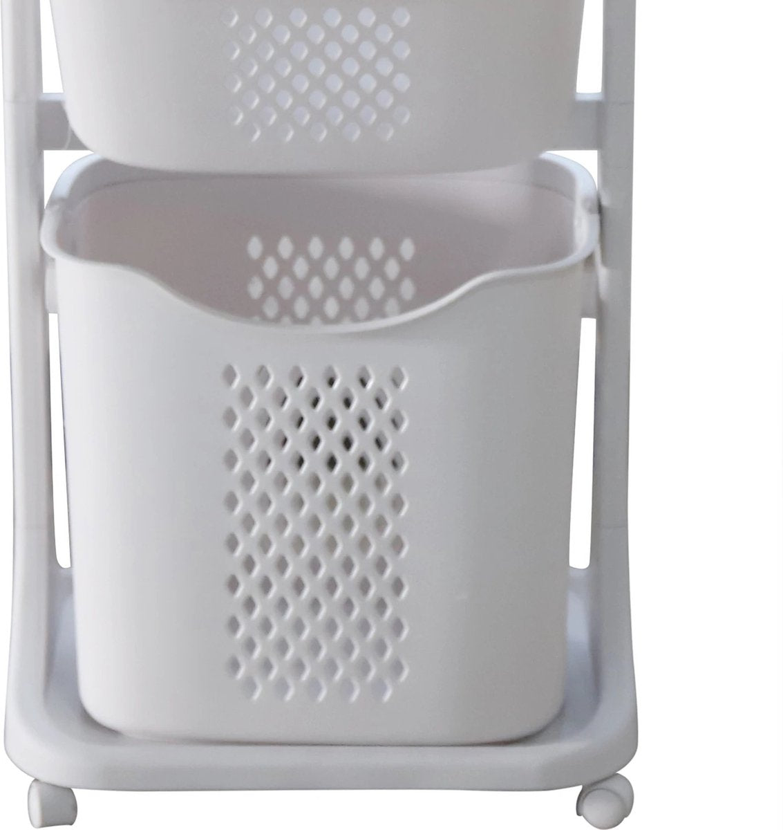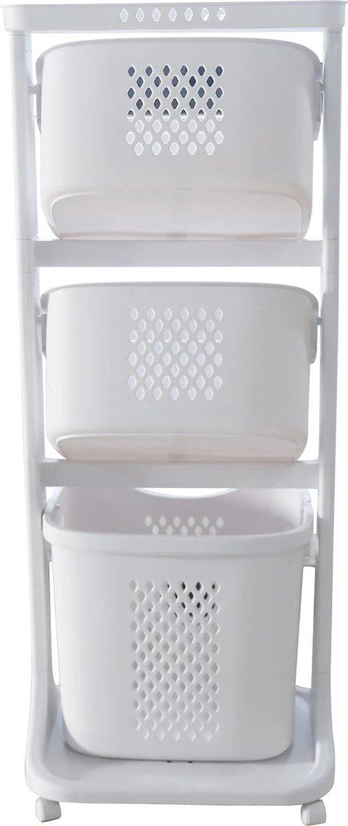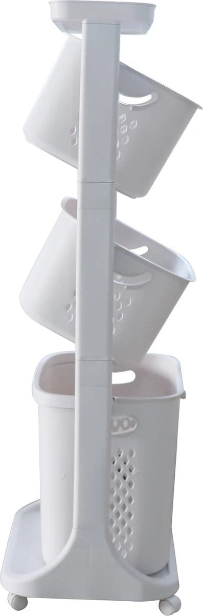 NOEA - Rollende waskar - Wasmanden - Wasmand 3 vakken - 360 graden draaibaar - Ruimte besparend - Geventileerd - Wit