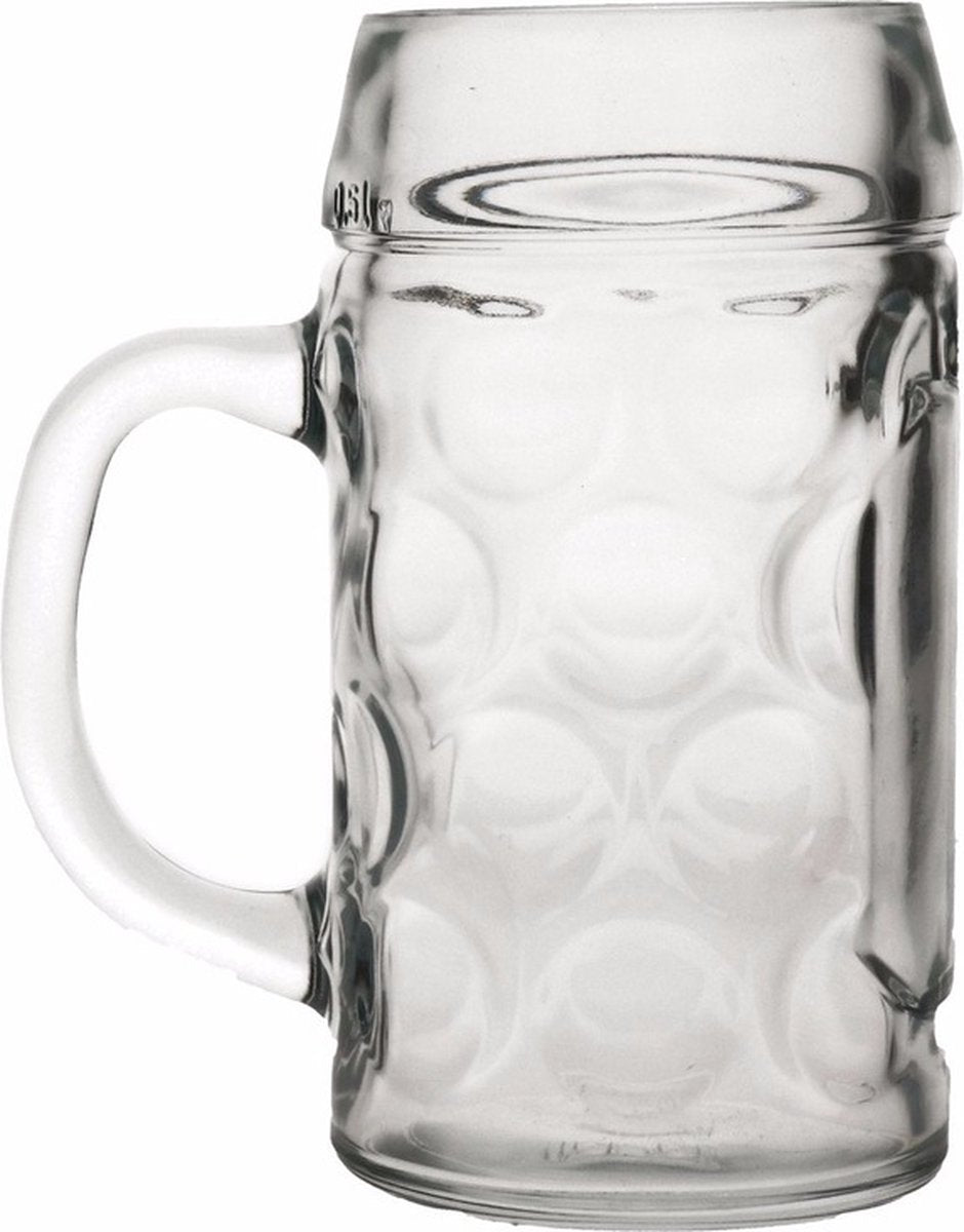 4x bierpullen/Bierglazen uit Duitsland. Echte grote feestelijke bierpullen met een grote inhoud van maar liefst 1 liter. Schenk uw bier tijdens uw feest in deze stevige bierpullen. Dit zijn de echte grote Duitse bierpullen voor Oktoberfest of Apres ski feesten gemaakt van glas. Bierfeest Oktoberfest feestartikelen.