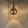 - Je ontvangt deze oosterse lamp met ophangketting, baldakijn en een in de EU vervaardigde lampfitting E-27 met een bijpassende kabel.
