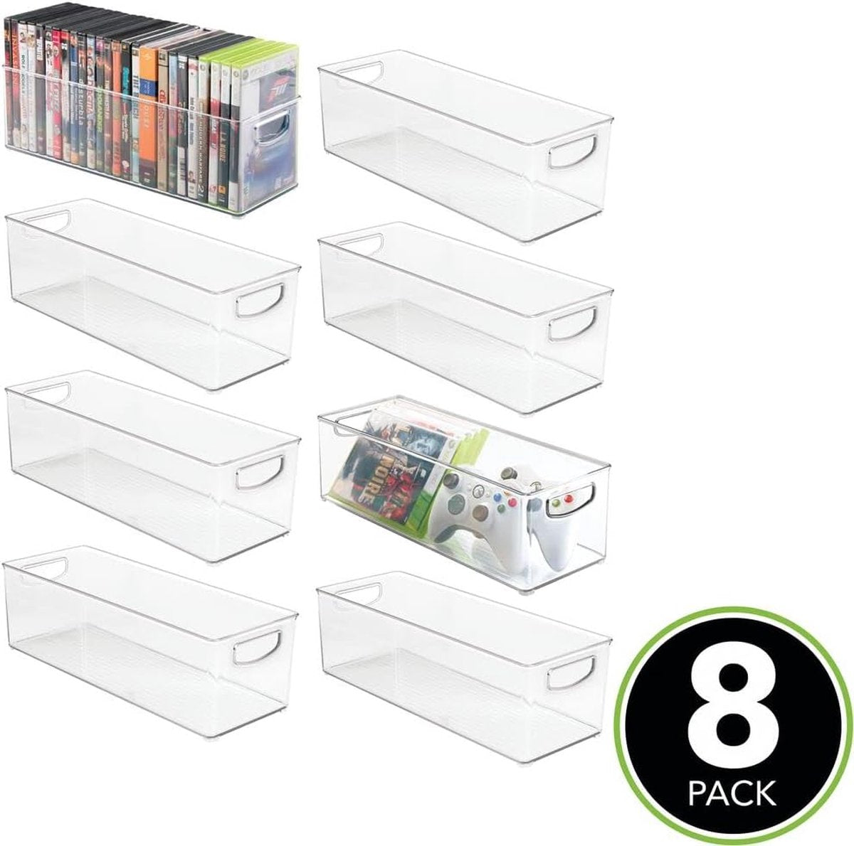 Opbergboxen - lade-organizer - voor kantoor, badkamer en keuken - voor cd's, dvd's of schrijfgerei - stapelbaar - doorzichtig - per 8 stuks verpakt