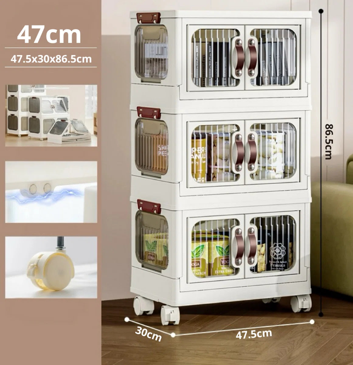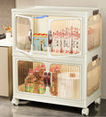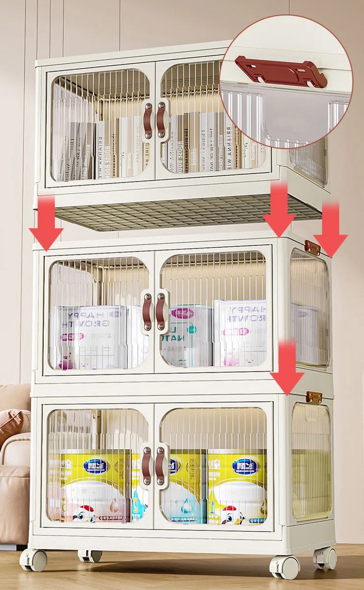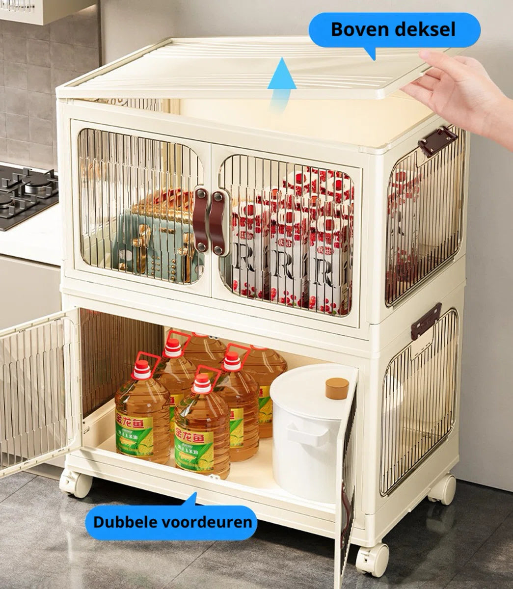 Opbergdozen - Opbergdozen met deksel - Opbergbox - Opbergkast - Opvouwbaar - Opbergkasten met deuren - Met wielen - Breedte 47cm - 3 lagen - Opbergen - Organizer - Opruimen - Keuken - Badkamer - Woonkamer - Slaapkamer