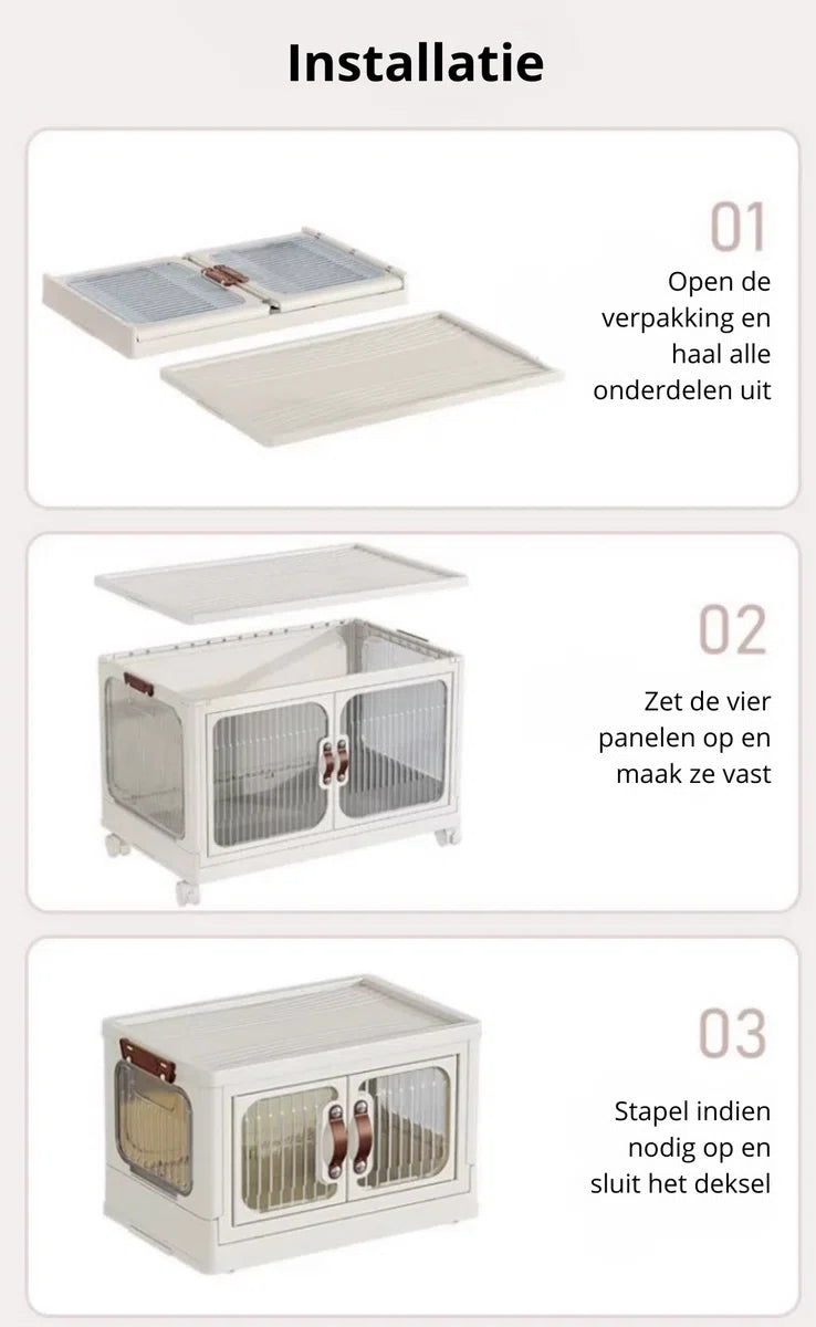 Als je de opbergdozen tijdelijk niet nodig hebt, is dat geen probleem! Je kunt ze gemakkelijk inklappen en opbergen.
