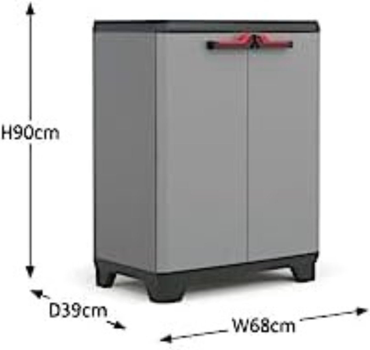 Kenmerken: uitgerust met een verstelbare plank met een maximaal draagvermogen van 15 kg, verstelbare poten, ergonomische soft-touch handgreep, voorbereid op slot (niet inbegrepen)