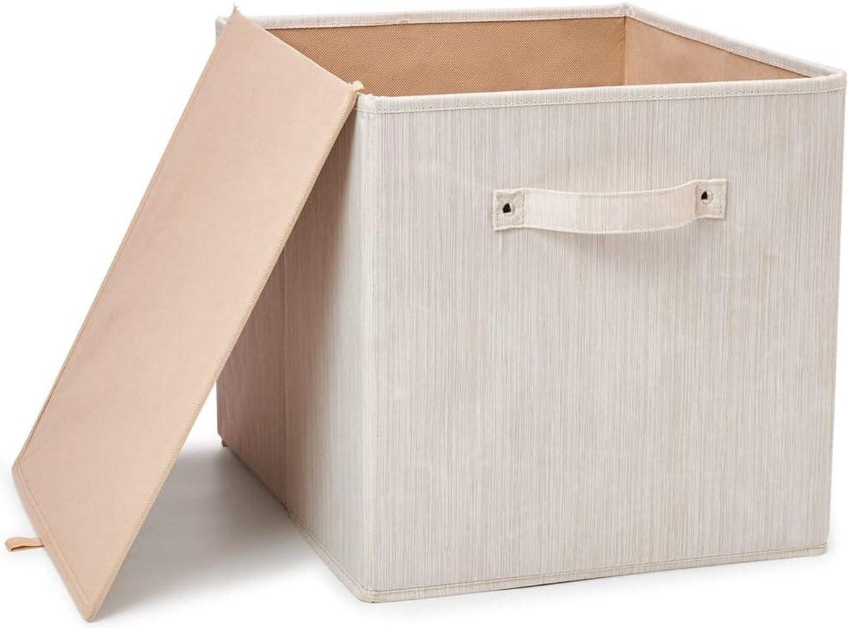 Opbergmand Katoenen Opvouwbare Opbergdoos Met Handvatten Voor Kinderkamer Speelgoed Kast Beige 33x38x33 Cm Opbergbox - Opbergdoos