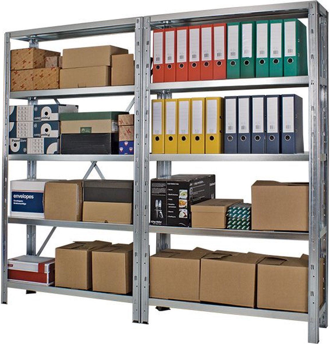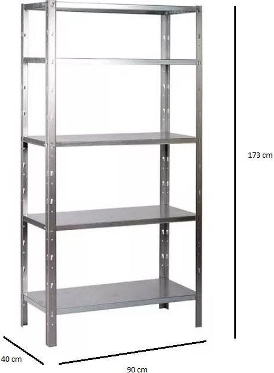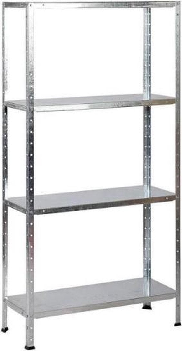 Opbergrek - Gegalvaniseerd metaal - 90 cm breed – 173 cm hoog - 4 legborden - 85 kg per legbord - Monteren zonder schroeven