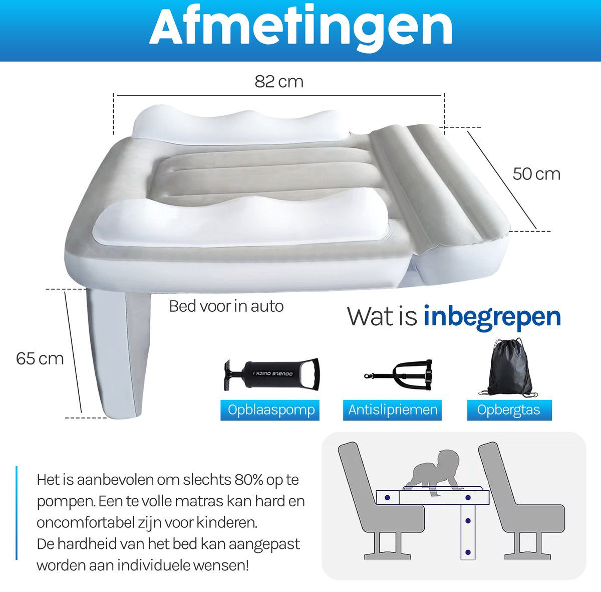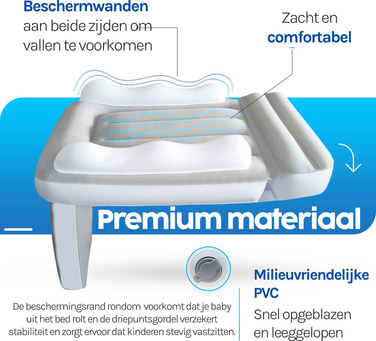 Opblaasbaar Vliegtuigbedje - Babybedje Vliegtuigmatras - Autobedje - Inclusief Opbergtas, Opblaaspomp en Spanbanden - Veilig en Comfortabel - Compact en Waterbestendig voor Onderweg
