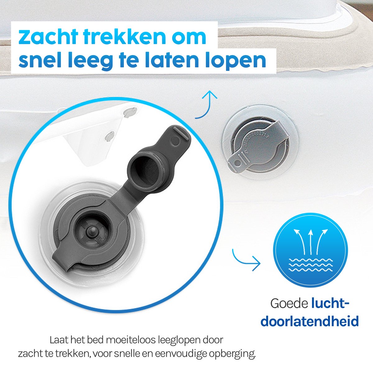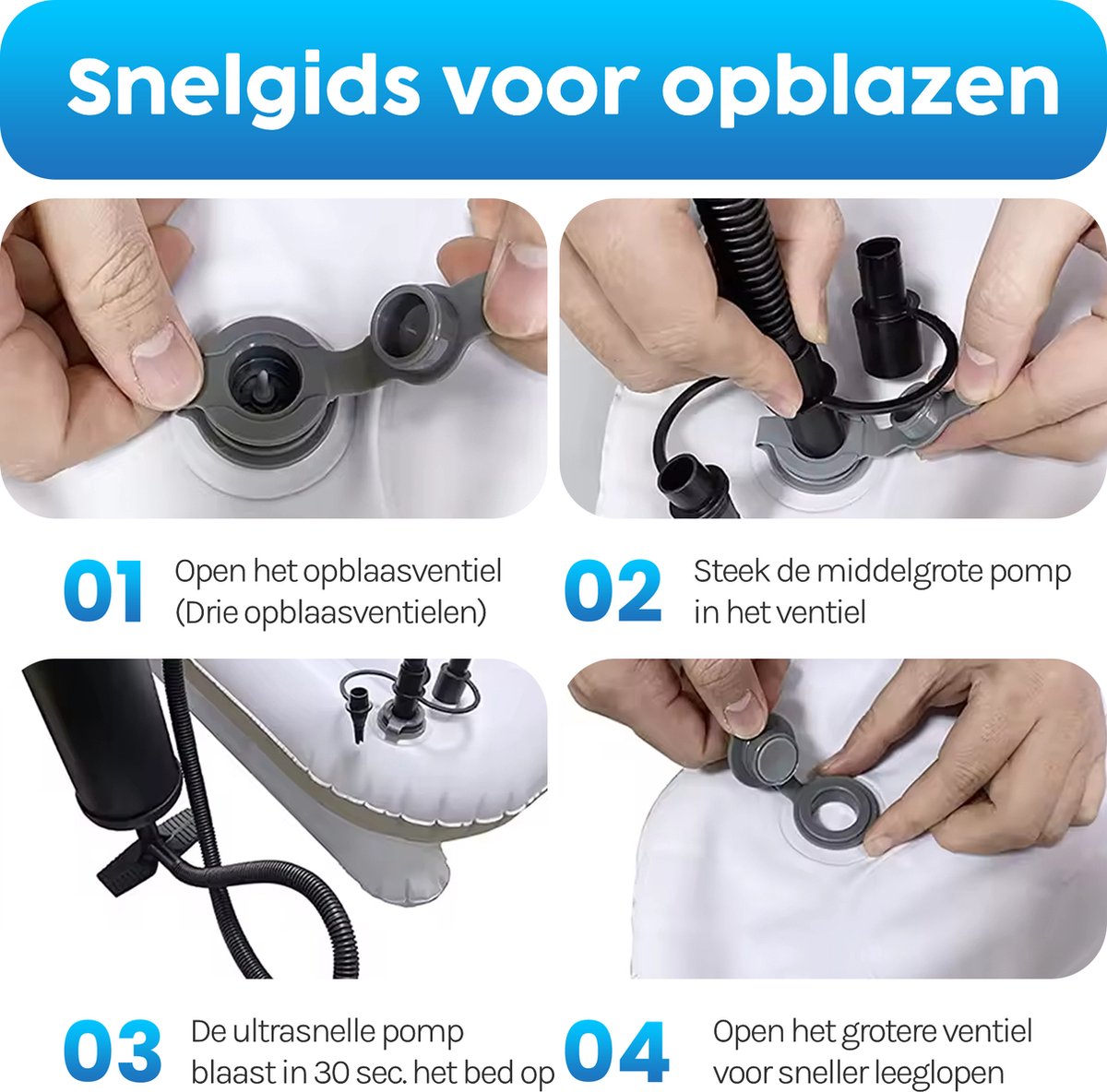 4. De bijgeleverde opblaaspomp zorgt ervoor dat het bedje snel en eenvoudig opgeblazen is