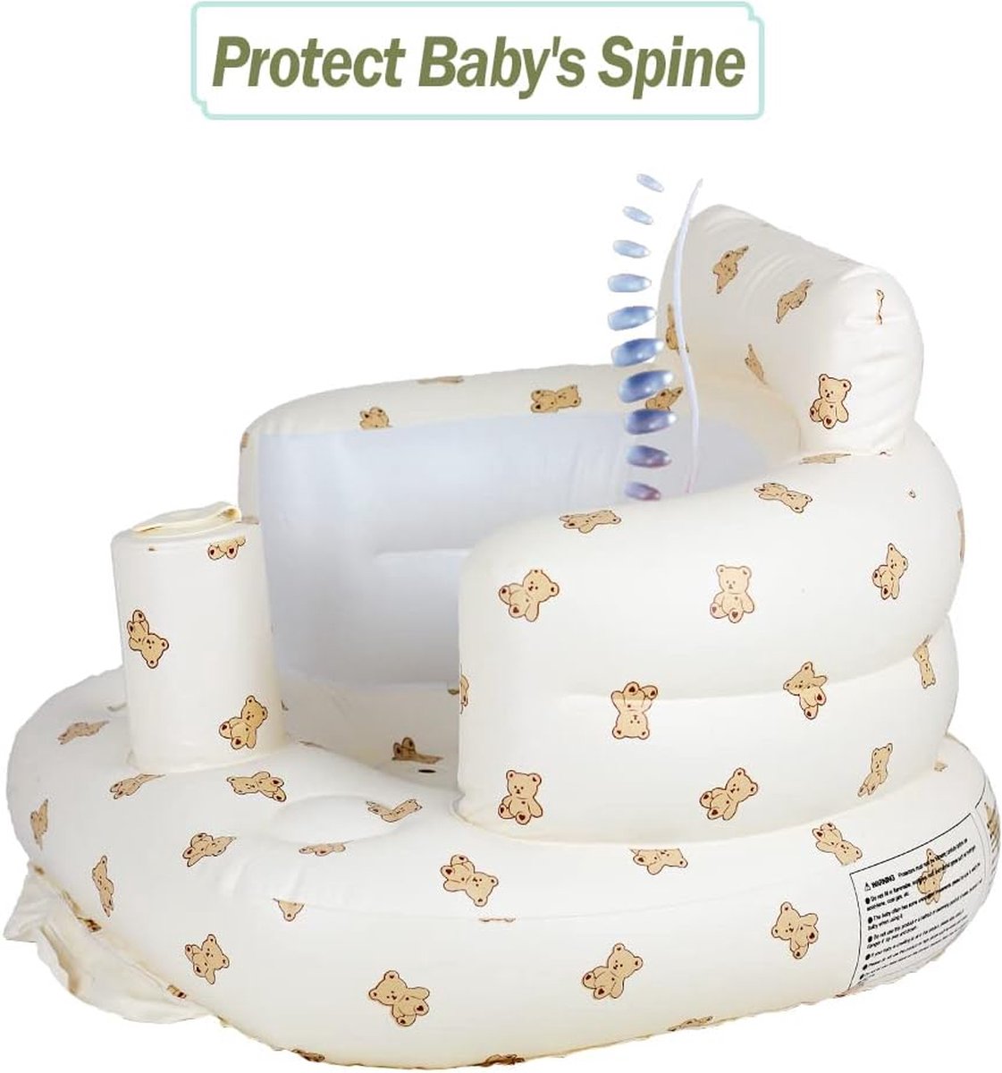 De opblaasbare babystoel is ontworpen met een grote, gebogen en bredere rugleuning die zachte, maar stevige ondersteuning biedt. Dit helpt de ruggengraat van je baby beter te beschermen terwijl hij of zij leert om rechtop te zitten. De stoel is geschikt voor baby's vanaf 3 maanden en biedt de juiste ondersteuning tijdens deze cruciale ontwikkelingsfase.