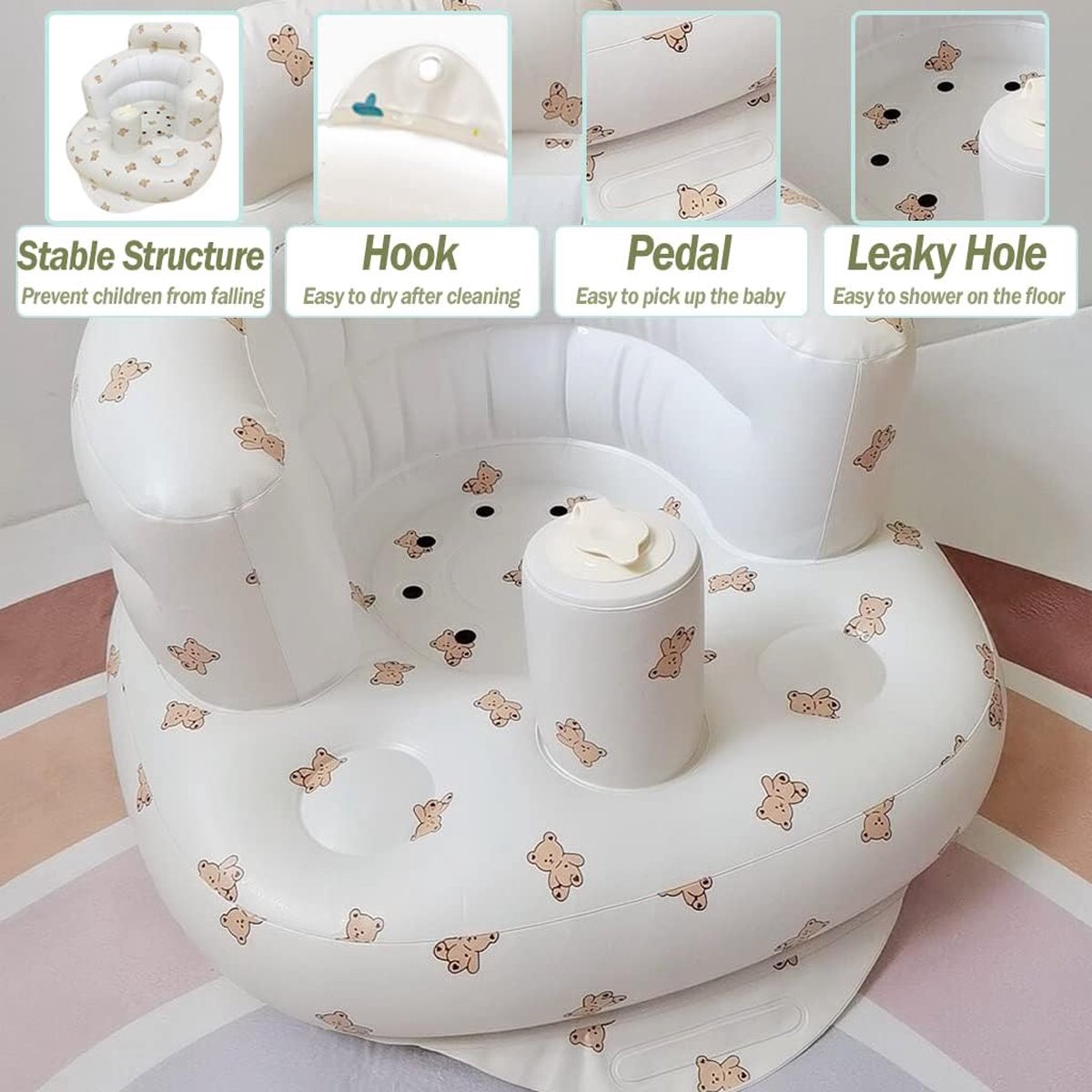 De stoel is gemaakt van dik, BPA-vrij PVC, wat zowel duurzaam als veilig is voor de huid van je baby. Het materiaal is niet-toxisch en huidvriendelijk, wat perfect is voor dagelijks gebruik. De stoel heeft luchtgaten die de luchtcirculatie bevorderen en een comfortabele, verhoogde rugleuning om te voorkomen dat je baby omvalt. Bovendien is de stoel ontworpen met schattige patronen en een stijlvol uiterlijk, waardoor het ook een geweldig fotorekwisiet is waar je baby dol op zal zijn.