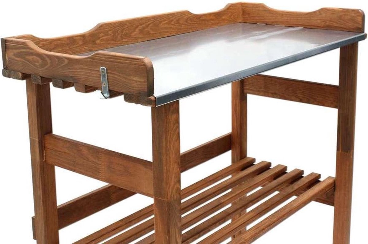 Oppottafel met Verzinkt Werkblad - 78x38x86 cm - massief grenen bruin