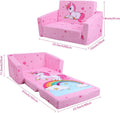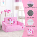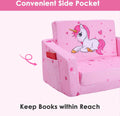 Opvouwbare kinderbank-rugleuning, 2-in-1, stabiele kinderstoel met stoffen tas en antislip kussen, zachte lichte flip-open kinderstoel voor slaapkamer, woonkamer, speelkamer, eenhoorn