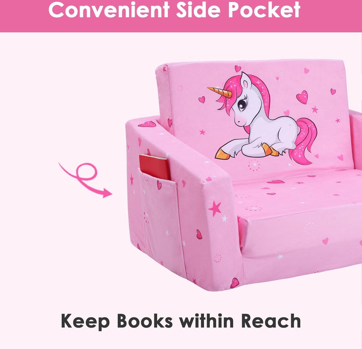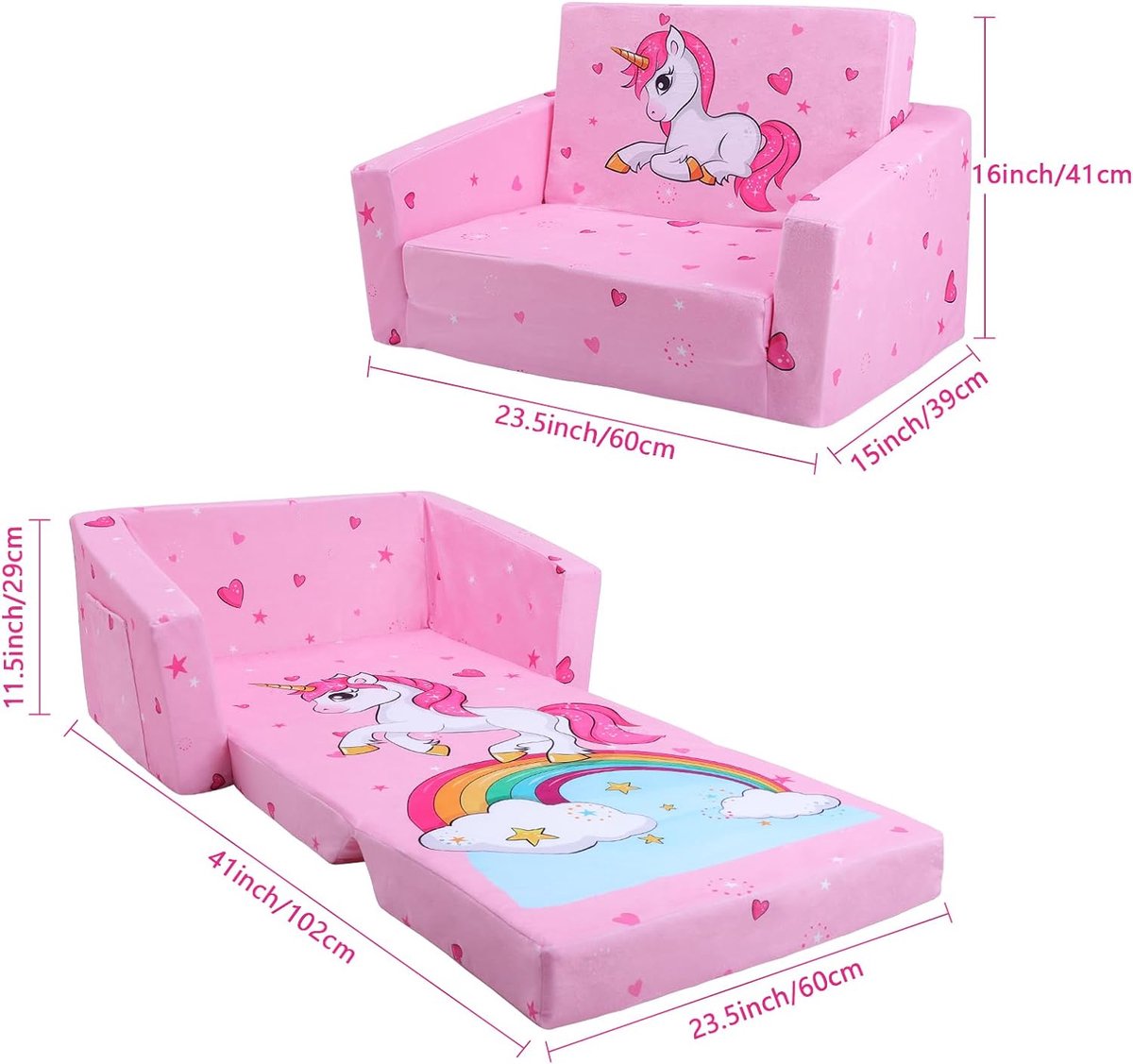 1. Hoge kwaliteit: onze kinderbank is gemaakt van veilige en comfortabele materialen, de bankhoes is huidvriendelijk, ademend en zacht Crystal Ultra Soft stof; de kussens zijn gemaakt van hoogwaardige spons met hoge dichtheid, die duurzaam en comfortabel is en een goed rebound-effect heeft; de binnenkant is ontworpen met versterking en hoge stabiliteit; antislip kussens aan de onderkant maken de bank minder glad. 2. Multifunctioneel: deze zitzak voor kinderen heeft een drievoudig opvouwbaar ontwerp, ingeklapt kan het een stoel worden, het kind kan lezen, studeren, enz.; opengeklapt kan hij een slaapbank worden, het kind kan er comfortabel een dutje op doen; de rechterkant heeft een stoffen zak, je kunt er boeken, klein speelgoed, mobiele telefoons, enz. in leggen, zeer praktisch. 3. Geschikte afmetingen: dit bankbed is 102 x 60 x 29 cm wanneer uitgeklapt en 60 x 39 x 41 cm wanneer opgevouwen; met een metalen ritssluiting aan de onderkant, kan de hele unit gemakkelijk worden gedemonteerd en gewassen, gemakkelijk schoon te maken. 4. Perfect cadeau: de slaapbank is bedekt met schattige roze eenhoorn, geliefd bij kinderen, het is een zeer goede keuze om het aan je kinderen te geven als verjaardags- of kerstcadeau om ze te begeleiden om een prachtige kindertijd door te brengen. 5. Warme tips: onze bankstoel neemt vacuümcompressieverpakking, de kinderbank kan wat vouwen hebben, maak je geen zorgen, afhankelijk van de omgeving en temperatuur, het zal geleidelijk worden opgeplust en de schoonheid herstelt.